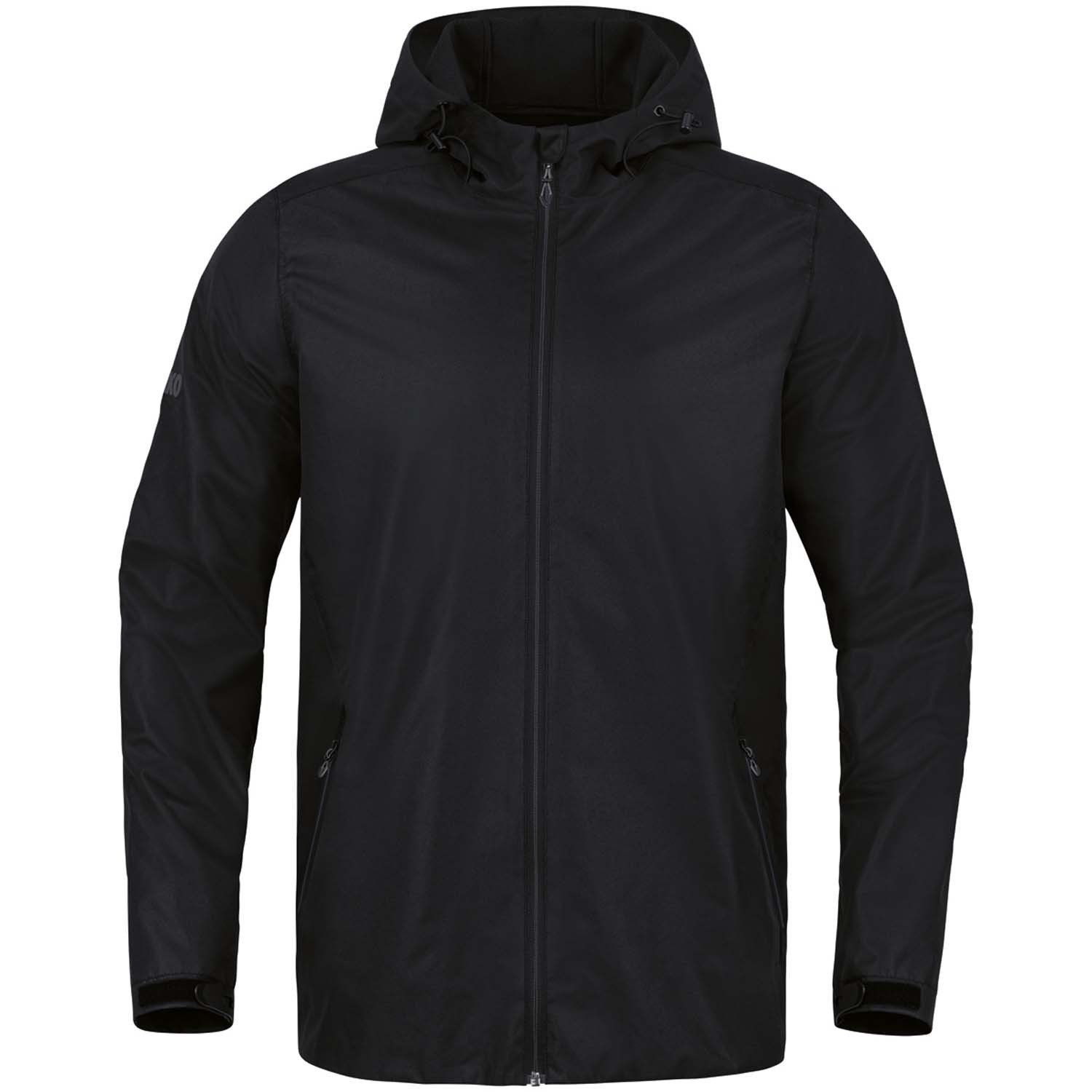 Jako Herren Allwetterjacke Allround. Das wasserabweisende Obermaterial der JAKO Allwetterjacke Premium hält dich bei Wind und Regen trocken. Die Regenjacke überzeugt durch geringe Feuchtigkeitsaufnahme und ist besonders pflegeleicht. Ein weiches Fleece in der Kragen-Innenseite kombiniert mit getapten Hauptnähten und Ärmelabschlüssen mit Klett sorgen für ein optimales Tragegefühl. Falls der Wind oder Regen etwas stärker wird, verfügt die Allwetterjacke auch über eine Kapuze. Wasserabweisendes Obermaterial mit PU-Beschichtung. Seitentaschen mit Reißverschluss. Getapte Nähte. Kapuze. Ärmelabschluss mit Klett. Zippergarage. Innenfutter aus Mesh. Weicher Fleece in der Kragen Innenseite. Material: 100% Polyester.