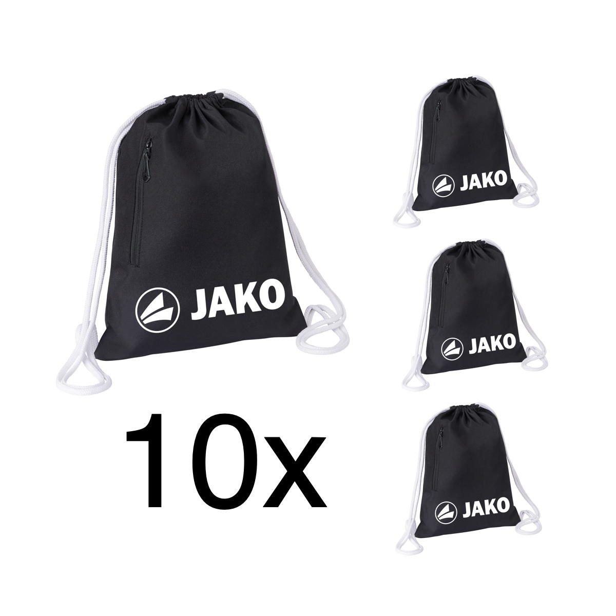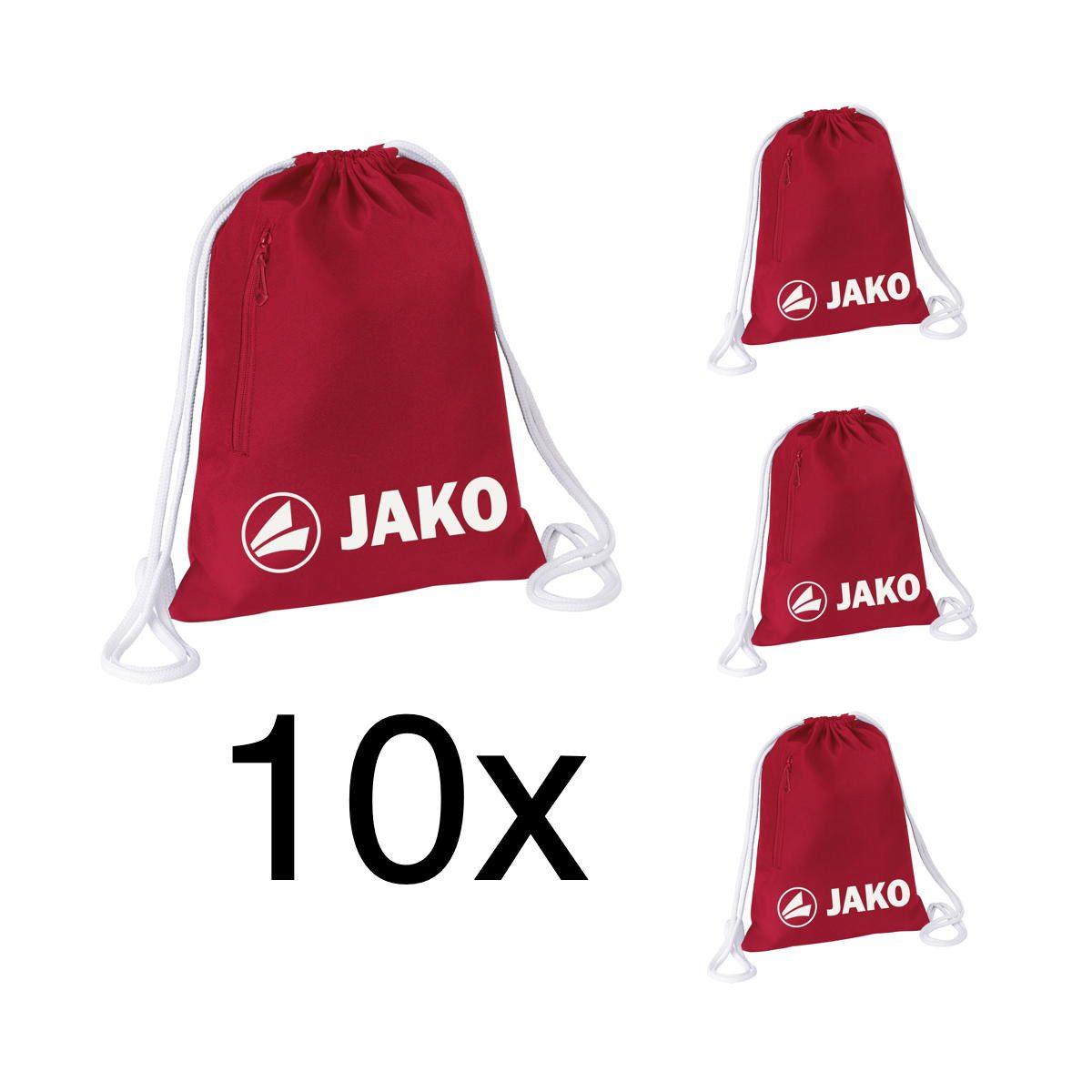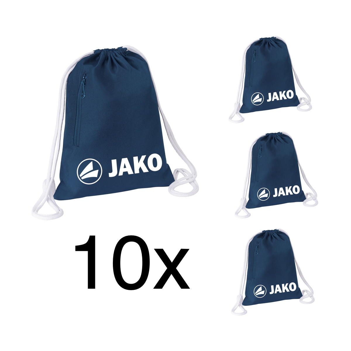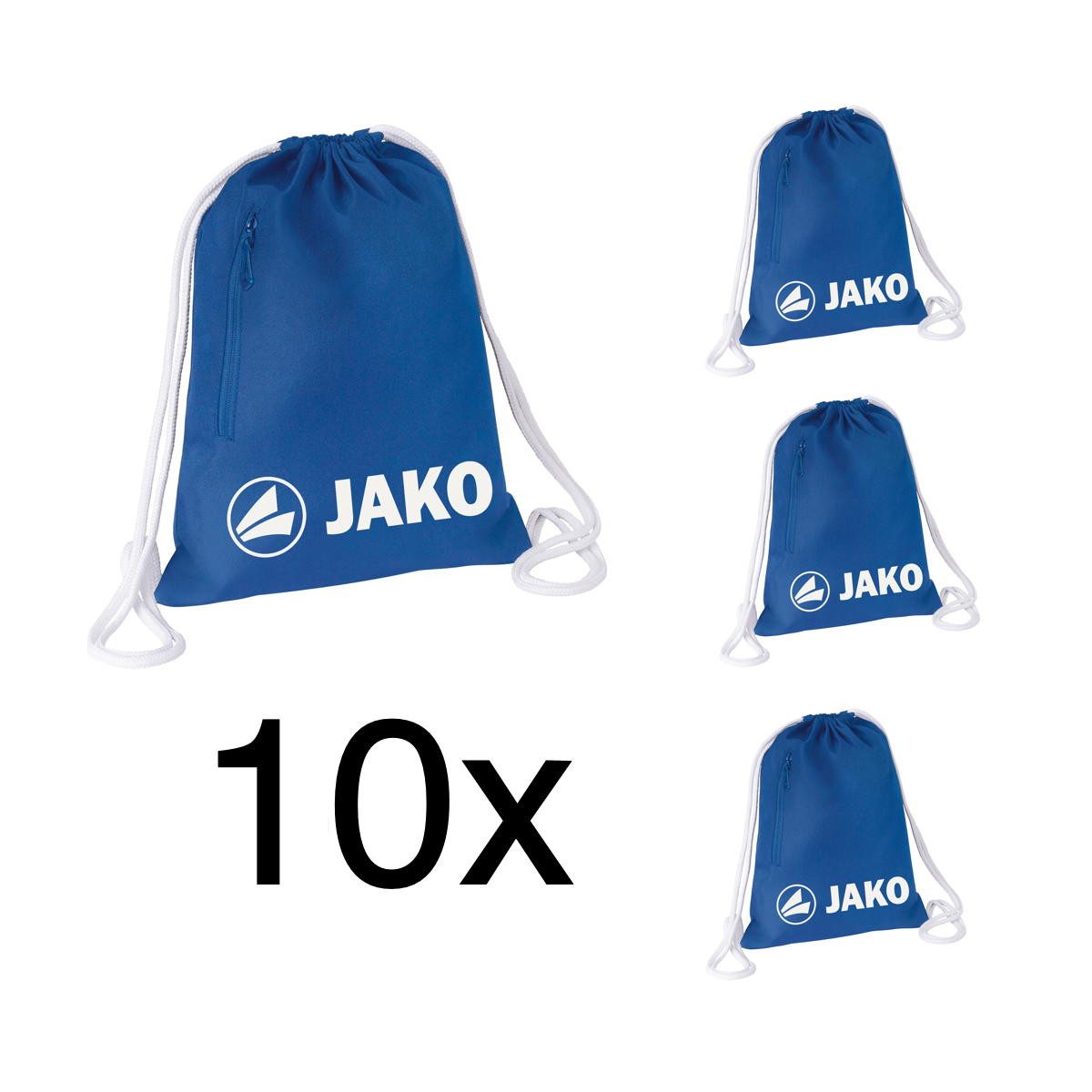Auf dem Weg zur Schule oder zum Sport. Im JAKO Gymsack kannst Du deine Sportsachen sicher transportieren. Der klassische Gymsack ist in vier unterschiedlichen Farben in der Размер 47 x 37,5 cm erhätlich. Auf der Vorderseite ist das JAKO Logo über die gesamte Breite zu sehen. Спрятать lässt sich der Gymsack durch die angebrachten Kordeln. Mit ihnen kannst Du das sportliche Accessoire über der Schulter oder auf dem Rücken tragen. Vervollständigt werden die Details durch die kleine Reißverschlusstasche auf der Außenseite. In der Reißverschlusstasche kannst Du deine Wertsachen wie beispielsweise Handy oder Schlüsselbund sicher verstauen. Hol dir jetzt den Gymsack 10 er Pack für dein Verein
