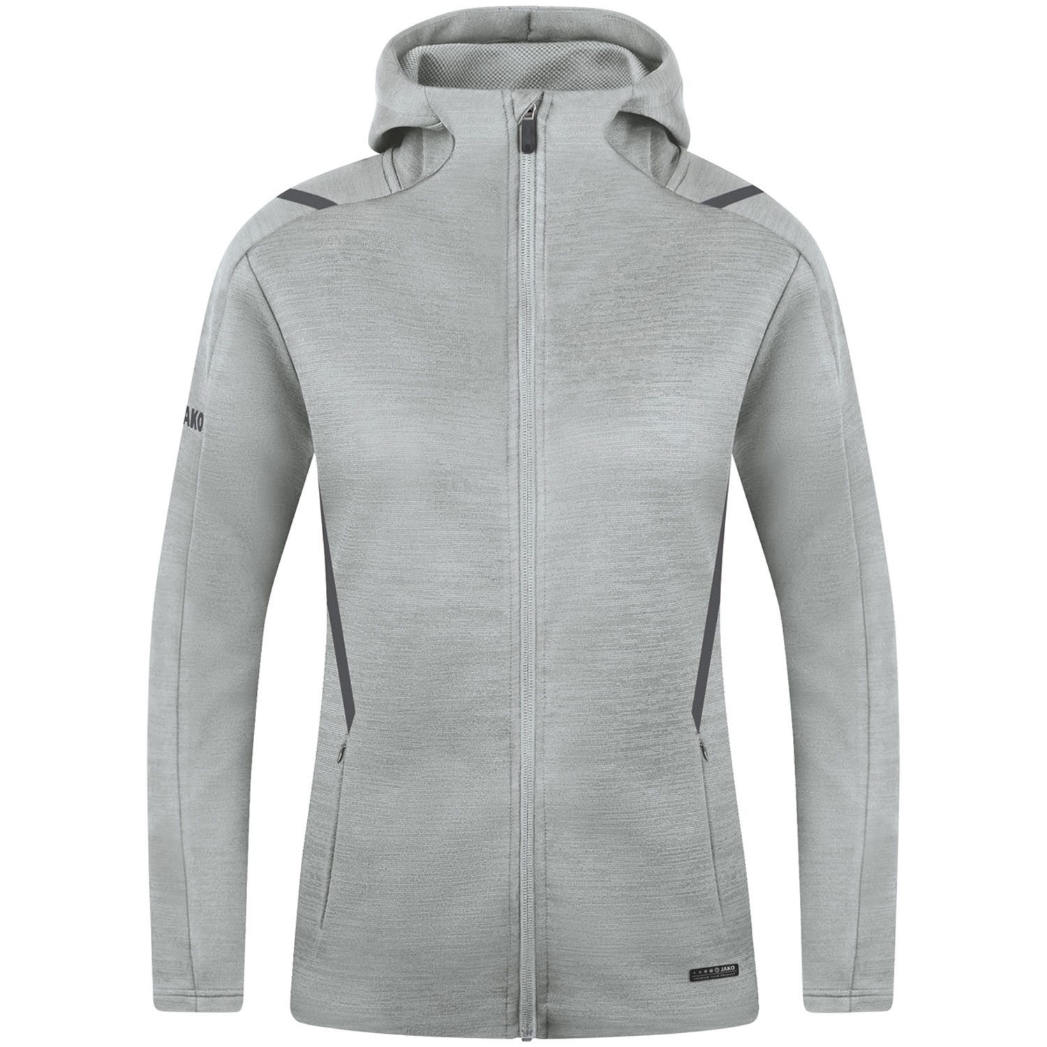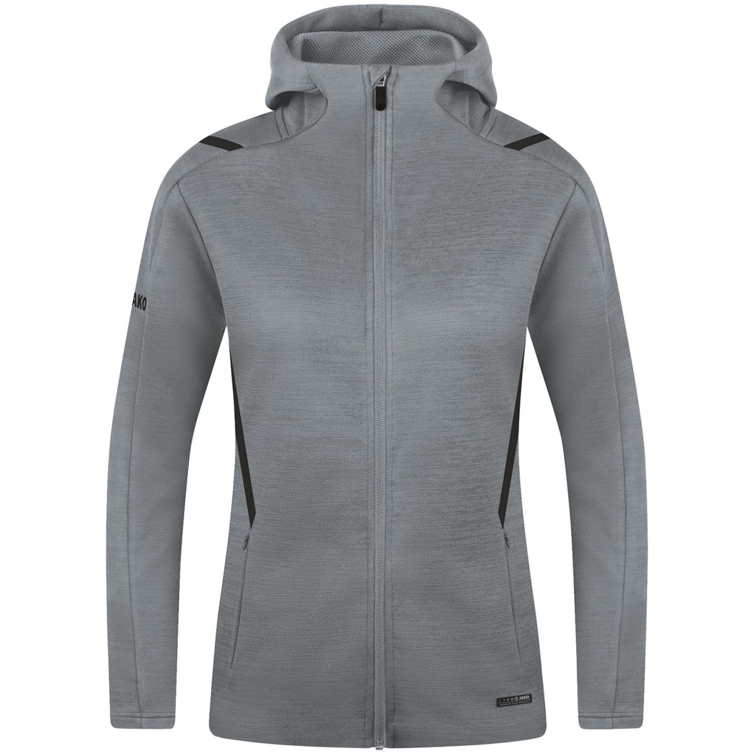 Jako Damen Freizeitjacke Challenge mit Kapuze. Performance trifft Casual. Die perfekte Kombination von funktionalen Trainings Styles und trendigen Freizeit Looks. Double Knit-Polyester. Moderne Melange Optik. Kontrast-Tape an der Schulter. Seitliches Kontrast-Tape. Kapuze mit Kordelzug. Kordelenden in Kontrast. Verlängerter Rücken. Verdeckte Seitentaschen mit Reißverschluss. Teamline Label. Ladies Fit. Material: 100% Polyester.