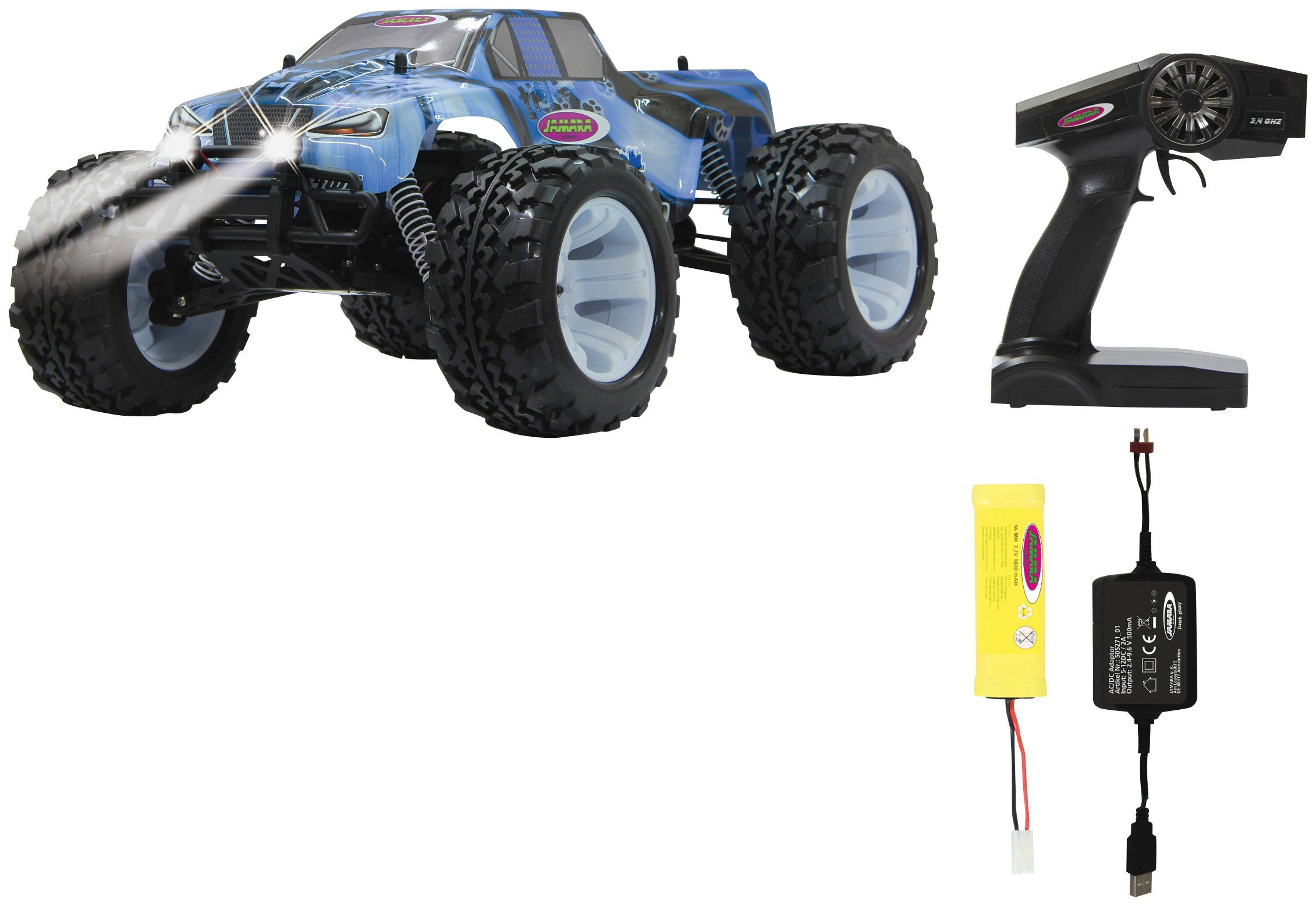 Ausstattung | 2 helle LED-Scheinwerfer, 2,4GHz für Mehrspielerbetrieb, Allradantrieb mit Stahldifferentialen, Aluminium Chassis eloxiert im Titandesign, Aluminium Chassisversteifung oben, Einstellbare Öldruckstoßdämpfer mit Aluminium Stoßdämpferkappen, Elektronik spritzwassergeschützt, Fahrwerk komplett einstellbar, Gas und Lenkung stufenlos regelbar, High-Grip Performance Reifen, Pivot-Ball Vorderradaufhängung, Schnelles kräftiges Lenkservo, Speedregler 40 A, gekühlt, programmierbar, Transparenter Hauptzahnradschutz |