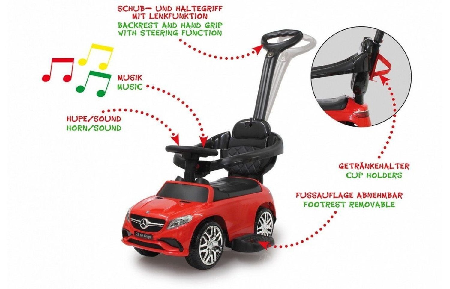 Der "Rutscher Mercedes-AMG GLE 63 rot 3in1" von Jamara ist der ultimative Rutscher für junge Auto-Fans, die von einem originalgetreuen Fahrerlebnis träumen. Dieser offiziell lizenzierte Rutscher bringt den klassischen Stil des Mercedes-AMG GLE 63 ins Kinderzimmer. Gefertigt aus robustem Kunststoff, bietet dieses Fahrzeug langlebigen Spielspaß. Die abnehmbaren Komponenten wie Schubstange und Fußauflage ermöglichen eine Anpassung an die Bedürfnisse des Kindes, während die Hupe am Lenkrad und die detailgenaue Optik den Spielspaß unterstreichen.