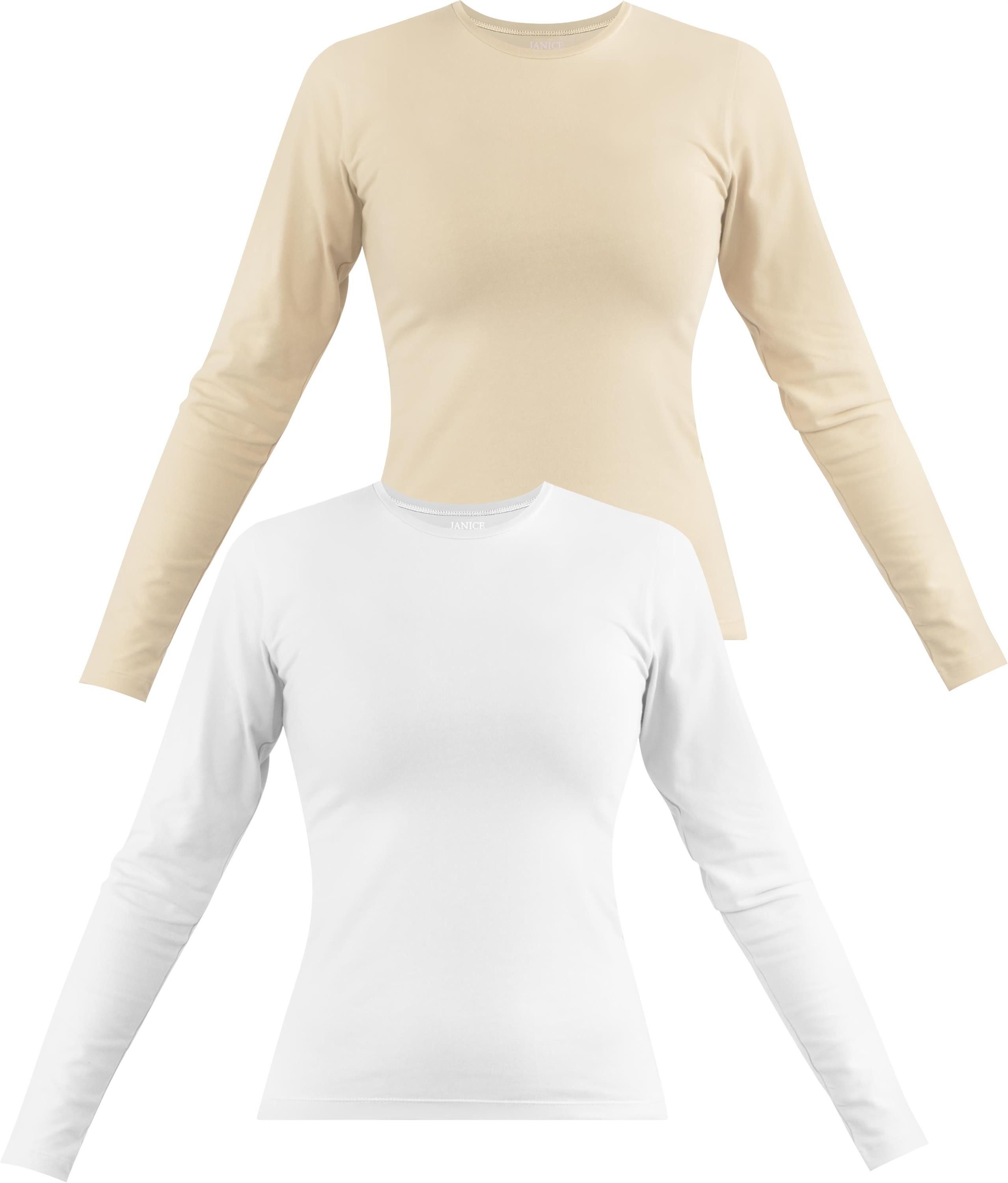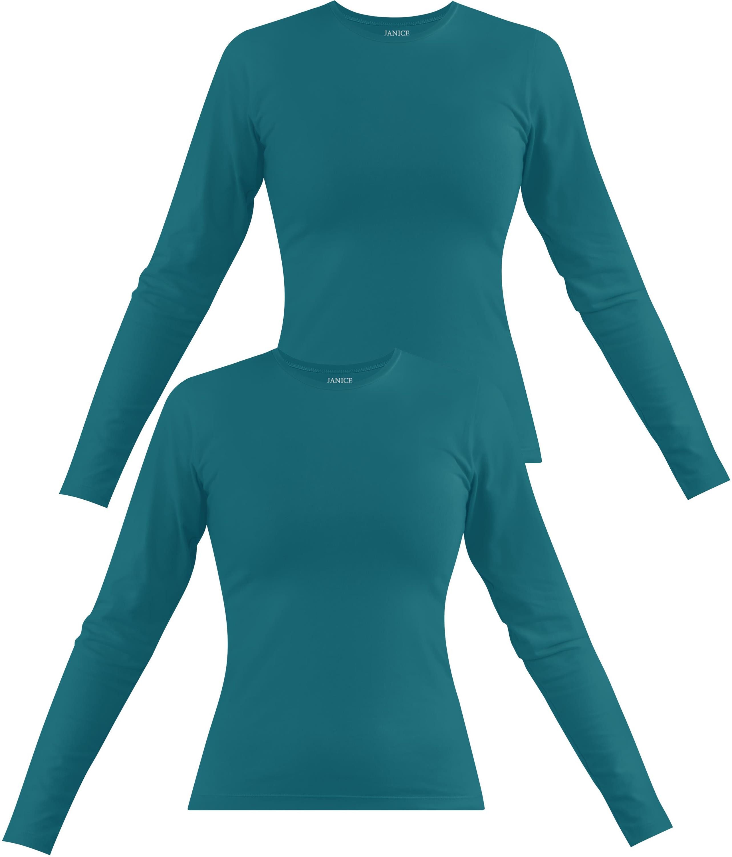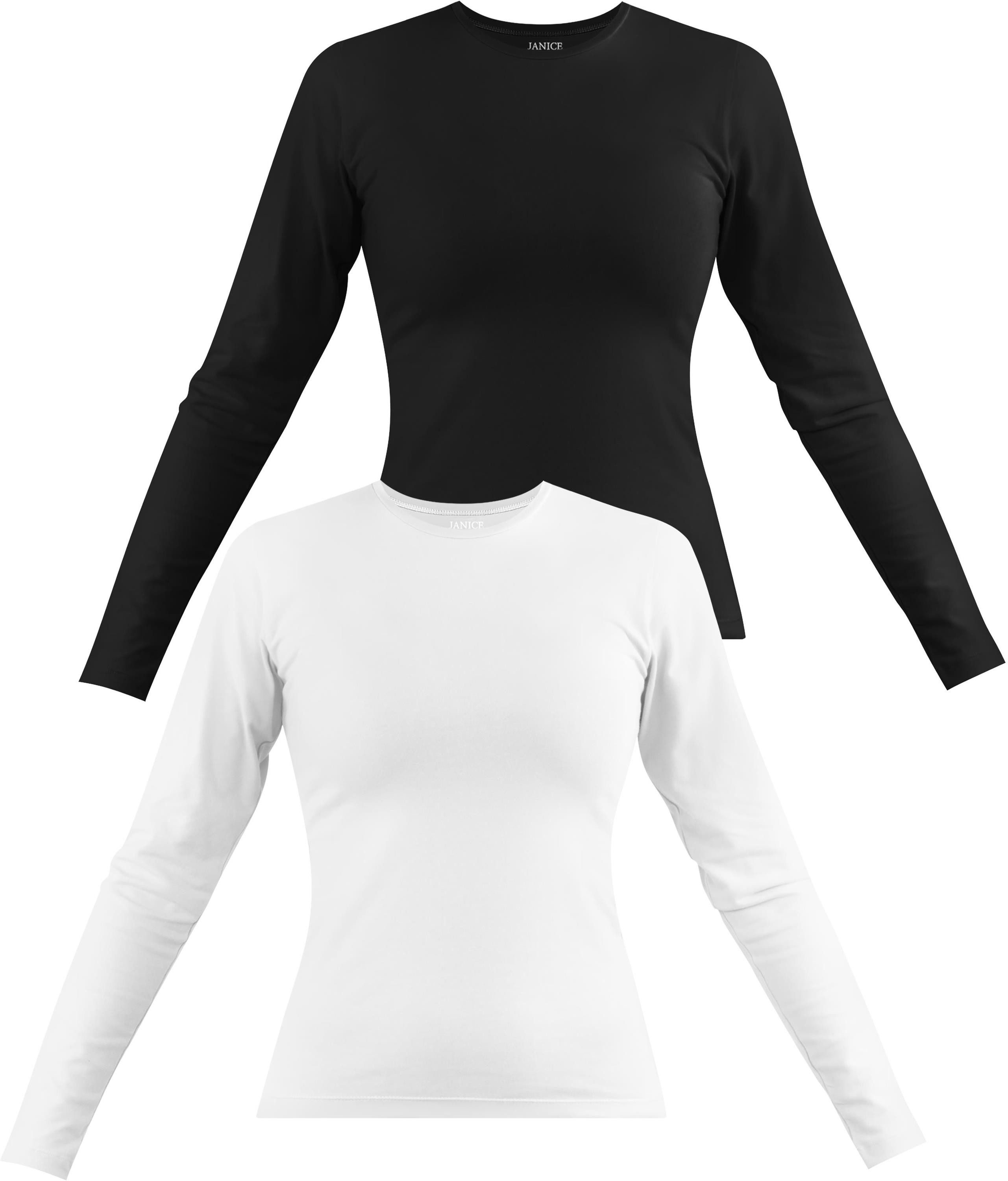 Basic Shirts für Damen, die zu jedem Outfit passen - ob leger, casual, business oder classic. Das klassische Langarm-Shirt kann sowohl unter einer Bluse, Hemd oder Lederjacke getragen werden. Ebenfalls sieht es alleine über einer Jeans, Shorts oder Rock besonders modern aus. Die Mischung aus hochwertiger Baumwolle und Elasthan sorgen für den optimalen Tragekomfort und einer tollen figurbetonten Passform. Der hohe Baumwollanteil garantiert einen angenehmen Tragekomfort, eine unkomplizierte Pflege und sorgt für ein optimales Tragegefühl zu jeder Jahreszeit und zu jedem Anlass. Das angenehme Material und die hochwertige Verarbeitung verleihen dem Oberteil einen modernen und eleganten Look. Die Shirts sind sehr pflegeleicht und können bei 40°C in der Waschmaschine gewaschen werden
