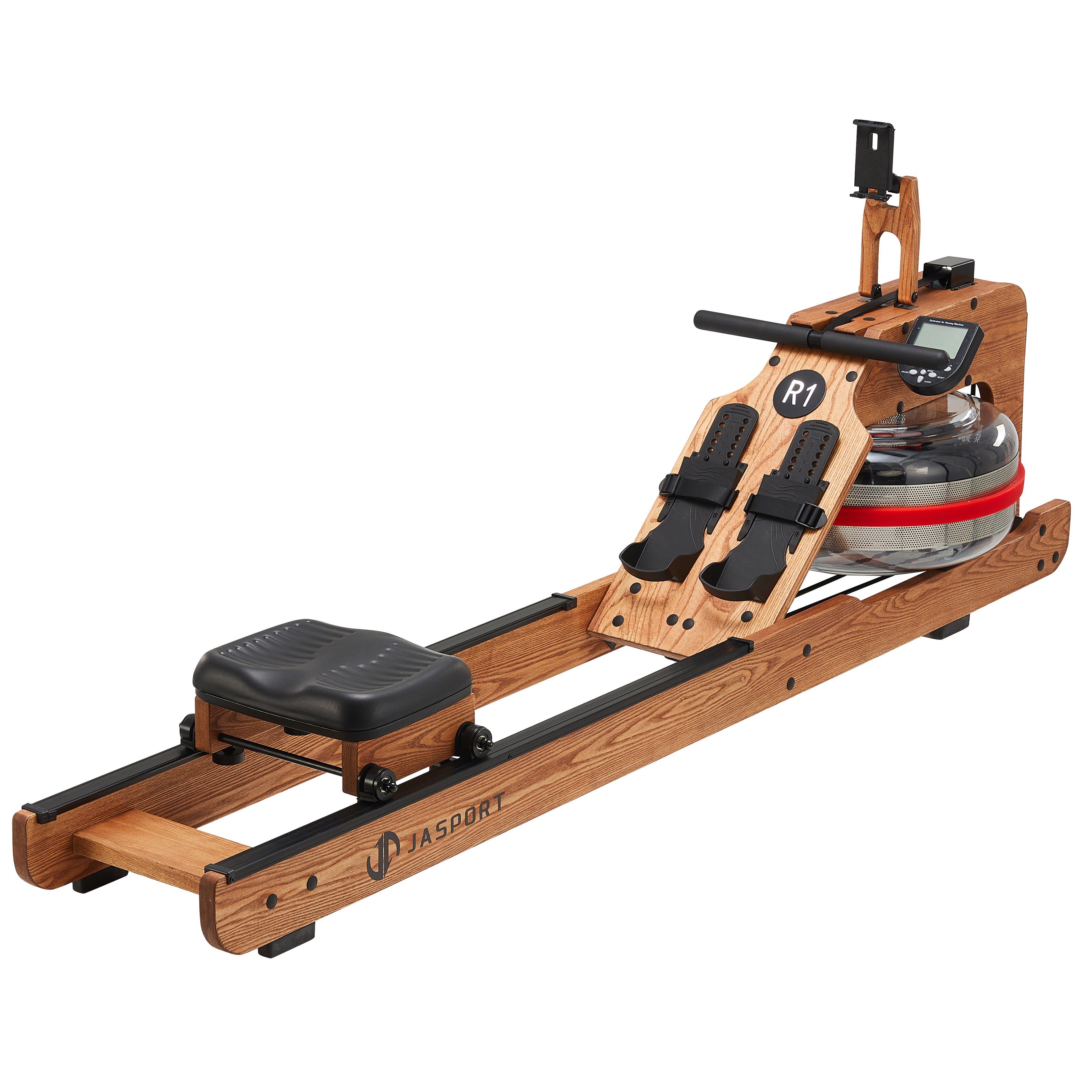 Das JASPORT R1 Wasser-Rudergerät für Zuhause aus massivem Eschenholz bietet ein effektives Ganzkörpertraining mit einer maximalen Belastbarkeit von 120 kg. Das innovative Wasserwiderstandssystem sorgt für ein realistisches und geräuschloses Rudererlebnis. Der ergonomische Sitz gleitet sanft auf einer Vollaluminiumschiene und ermöglicht komfortables Training. Die multifunktionale LED-Anzeige zeigt wichtige Trainingsdaten in Echtzeit an und die Kinomap-Kompatibilität bereichert das Trainingserlebnis. Dank der robusten Konstruktion und der Sicherheitsstandards ist der JASPORT R1 die ideale Wahl für Fitnessenthusiasten.