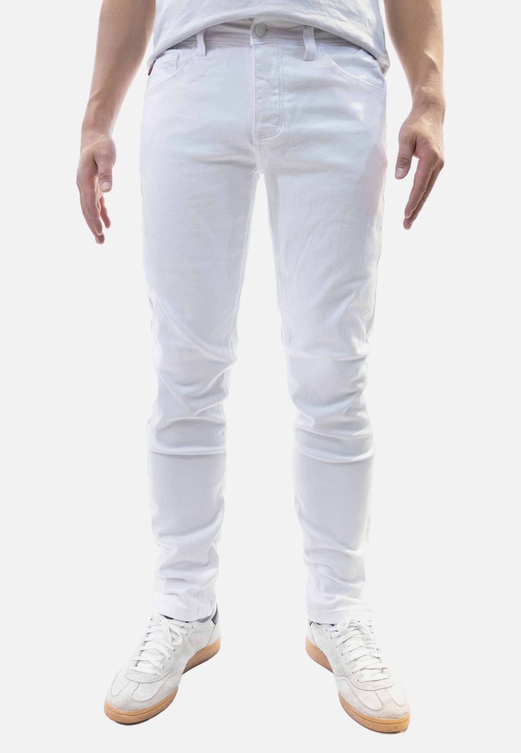 Die Jaylvis Herren Jeans überzeugt durch weichen, weißen Denim-Stoff und einen komfortablen Regular Fit Schnitt.