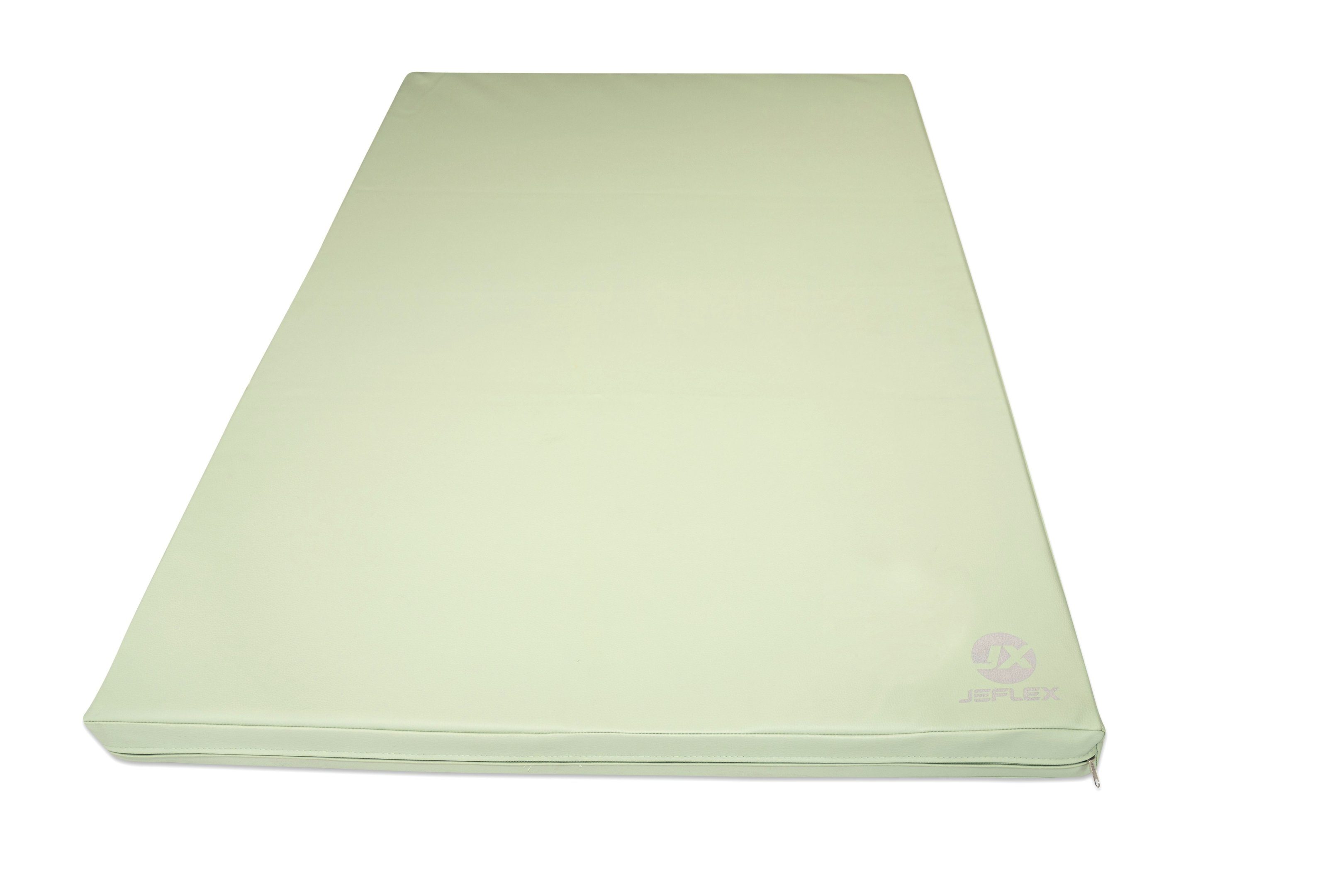 Jeflex - Weichbodenmatten 150 x 100 x 8 cm MADE IN GERMANY / Gymnastikmatte tragbar / platzsparende Fitnessmatte & Yogamatte / Spielmatte für Kinderzimmer Sicherheit beim Turnen und Spielen mit Jeflex Weichbodenmatten Gefertigt aus hautfreundlichen Stoffen Schaumfüllung: PUR-Schaumstoff mit Härtegrad 30 Strapazierfähiger Bezug Mattenbezug mit Leder- / Narbenoptik Exzellente Rohstoffe - Die Weichbodenmatten von Jeflex bestehen aus europäischem Kunstleder mit feiner Lederstruktur. Die Turnmatte ist gefüllt mit Polyurethanschaumstoff und ist somit langlebig & strapazierfähig. Multifunktional - Unsere Fitnessmatte ist ideal für verschiedene Trainingsaktivitäten wie Turnen, Gymnastik, Yoga, Pilates, Kampfsport, Wrestling, Fitness-Workouts oder Fitnessübungen. Safety first - Ob beim Workout, Spielen & Turnen Zuhause oder Outdoor steht Ihre Sicherheit & das Wohlergehen Ihrer Kinder an ersten Stelle. Unsere Jeflex Matten bieten Ihnen den richtigen Rückhalt und Schutz vor Verletzungen. Hautfreundlich - Das Kunstleder der Turnmatte, sowie der verwendete PUR-Schaumstoff ist hautfreundlich und bedenkenlos einsetzbar. Die Oberfläche der Turnmatte ist mit Wasser problemlos abwaschbar. Wir versprechen Ihnen sofortiges Handeln bei Produktproblemen mit Ihrer Weichbodenmatte. Technische Daten: Maße: 150 x 100 x 8 cm (LxBxH) Härtegrad: Mittelweich RG30