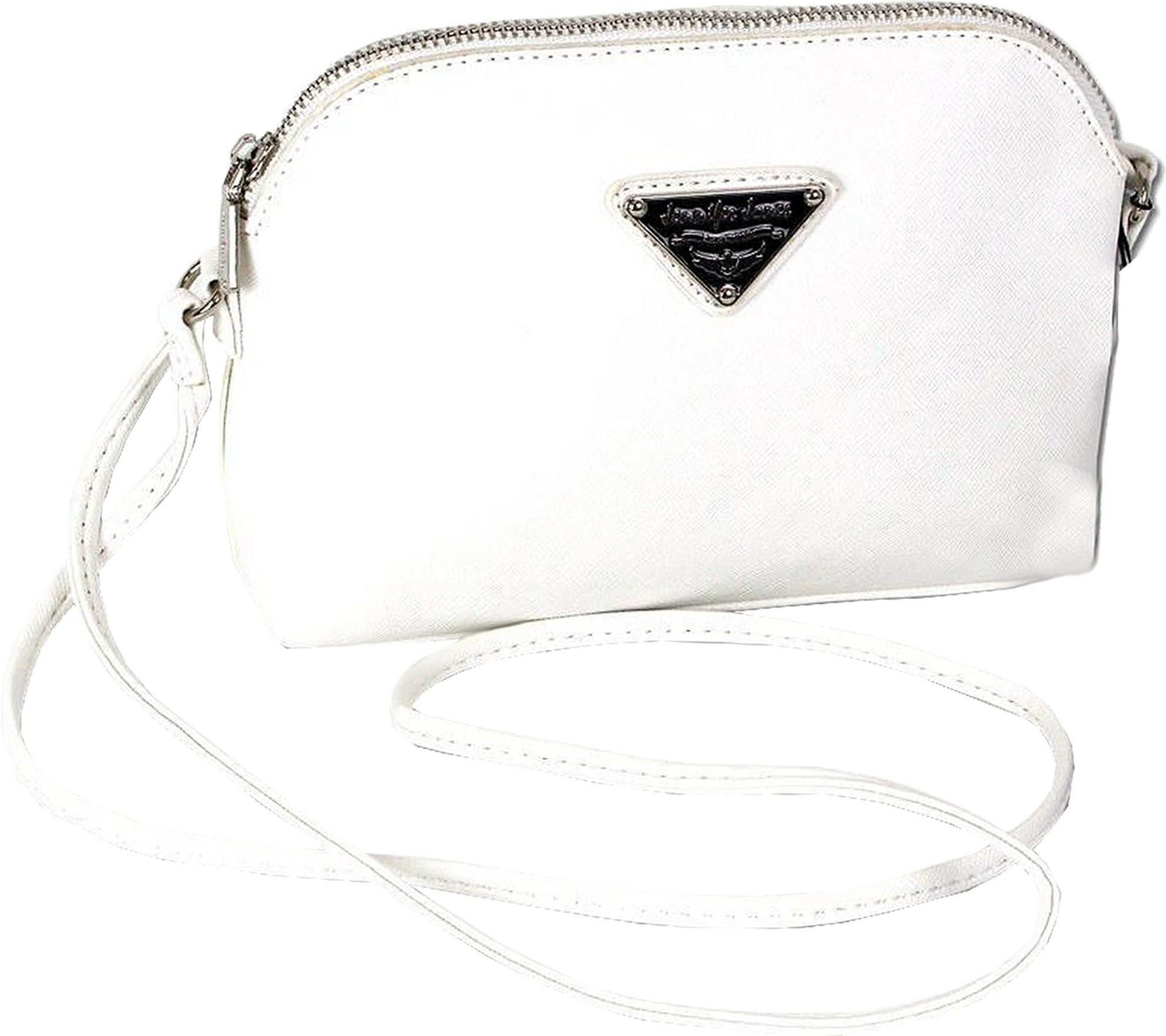 Eine modische Umhängetasche Abendtasche für Damen der Marke Jennifer Jones in der Farbe weiß. Diese elegante Tasche aus Kunstleder mit den Maßen 22cm x 5cm x 16cm hat die Bestellnummer.