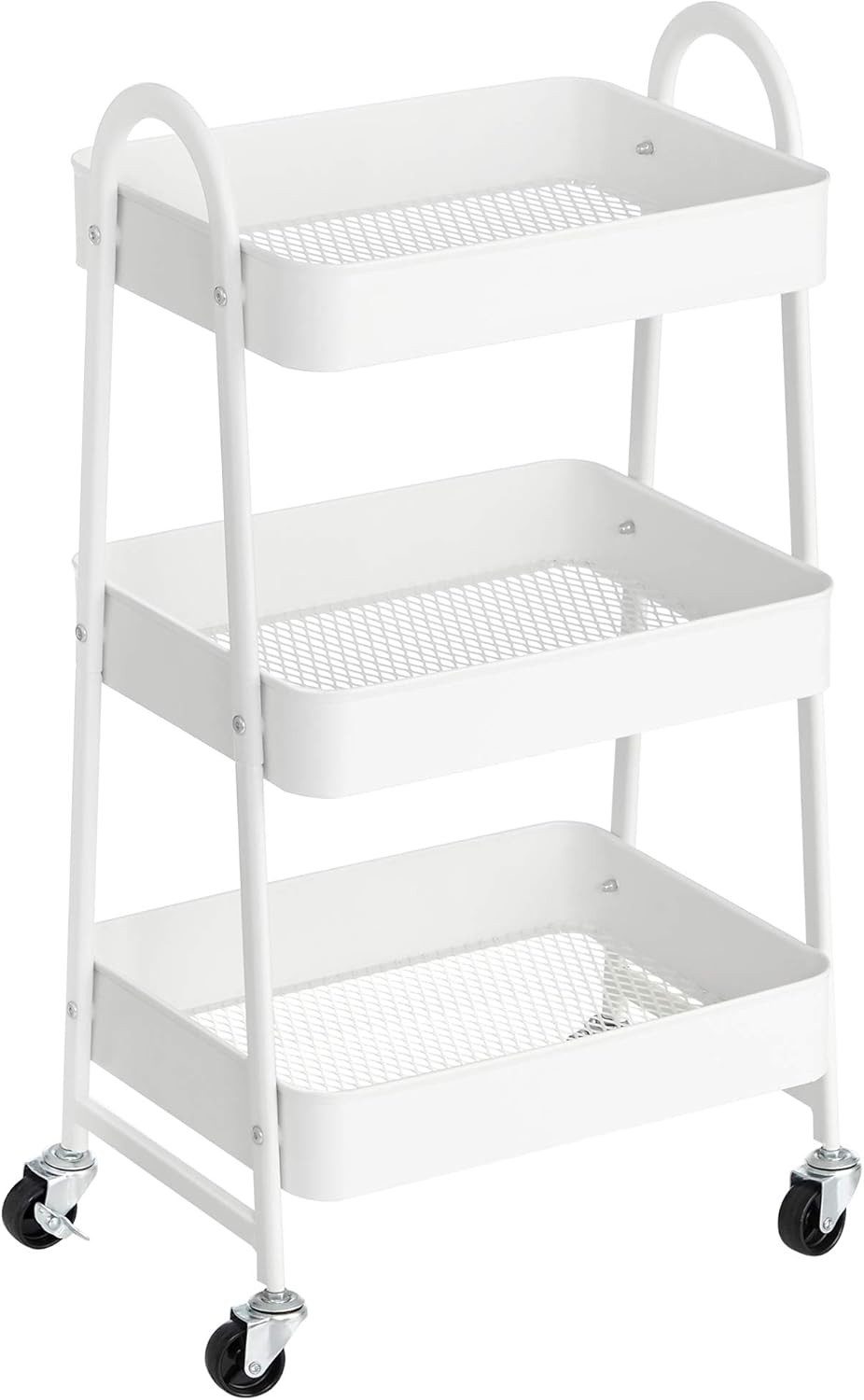 Darauf ist VerlassDieser robuste Küchenwagen verdient Ihr Vertrauen. Die 3 Ablagefächer werden von Stahlrohren stabil gestützt und jeder Korb kann Gewichte bis 10 kg aushalten. Dieser Rollwagen lässt eine lange Gebrauchsdauer erwarten.