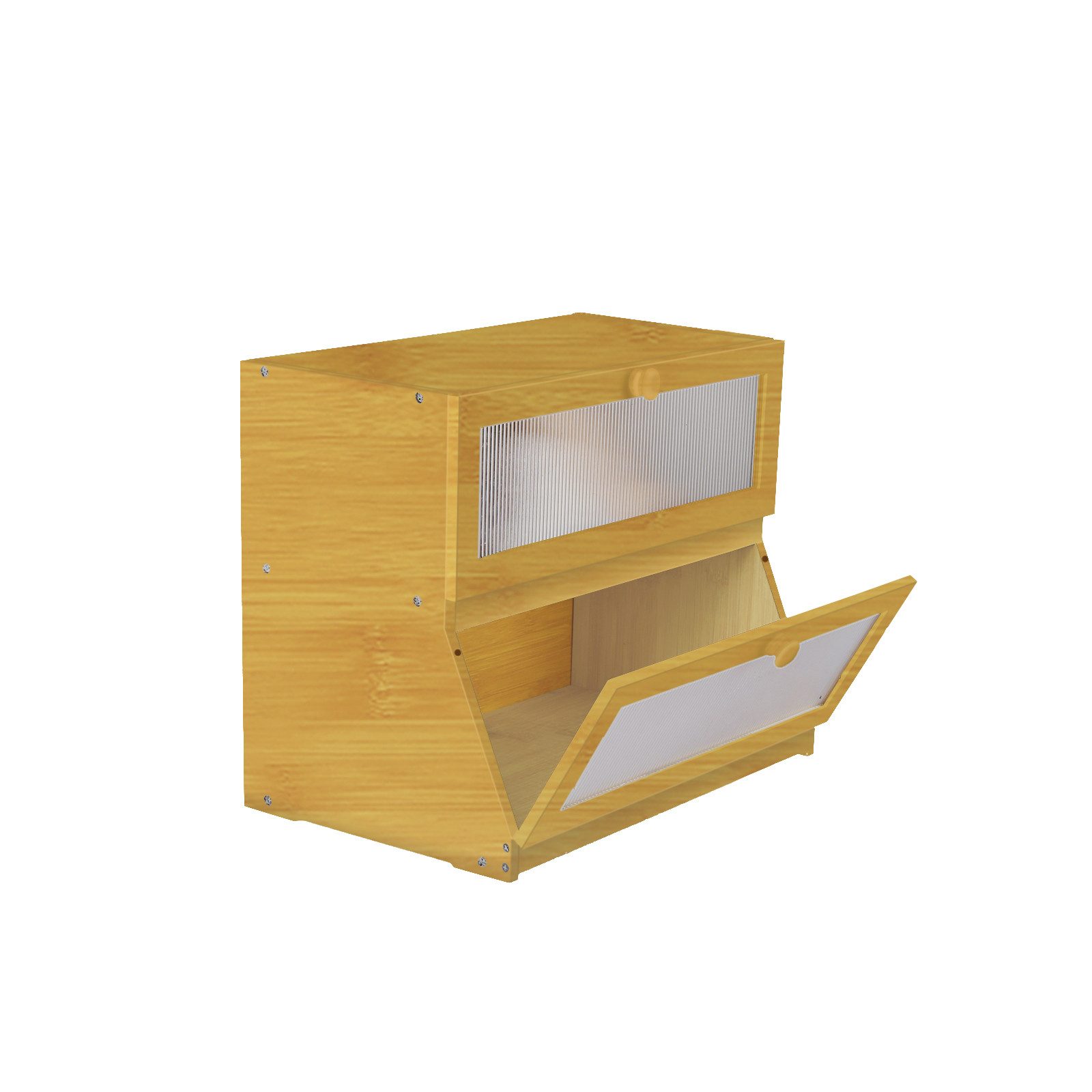 Multifuntionales Platzwunder - Du kannst unseren Brotkasten Holz auch als zusätzliches Küchenregal z.B. für Mehl, Nudeln oder Müsli nutzen. Zudem bietet dieser Brotkasten eine zusätzliche Ablagefläche oben auf dem Kasten.