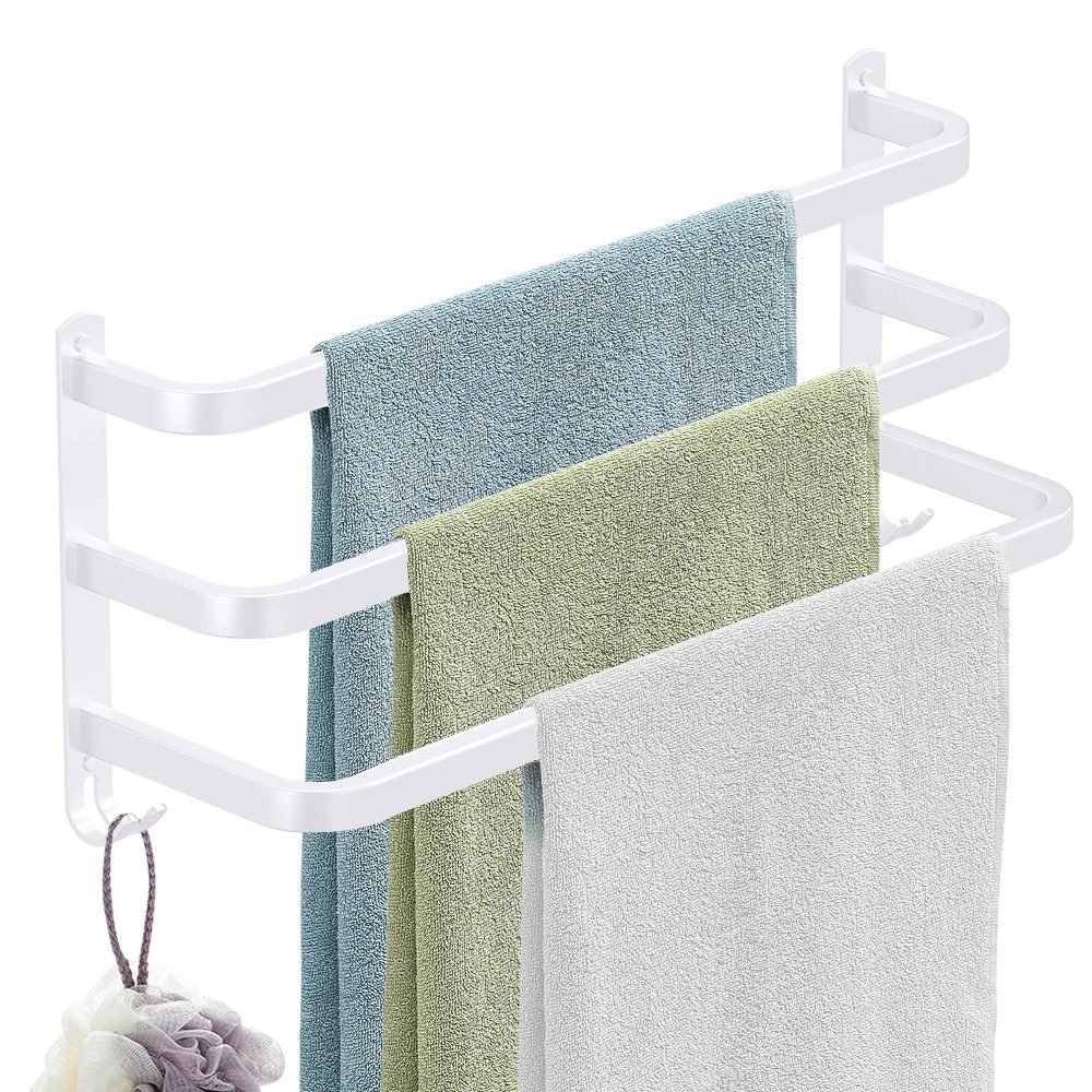Handtuchhalter Bad Größe: Dieser Handtuchhalter ohne bohren verfügt über ein klassisches Design mit drei Stangen in Höhe und Tiefe, das nicht nur Platz spart und mehr Handtücher aufhängt, sondern auch eine gute Belüftung für ein schnelles Trocknen der Handtücher bietet.