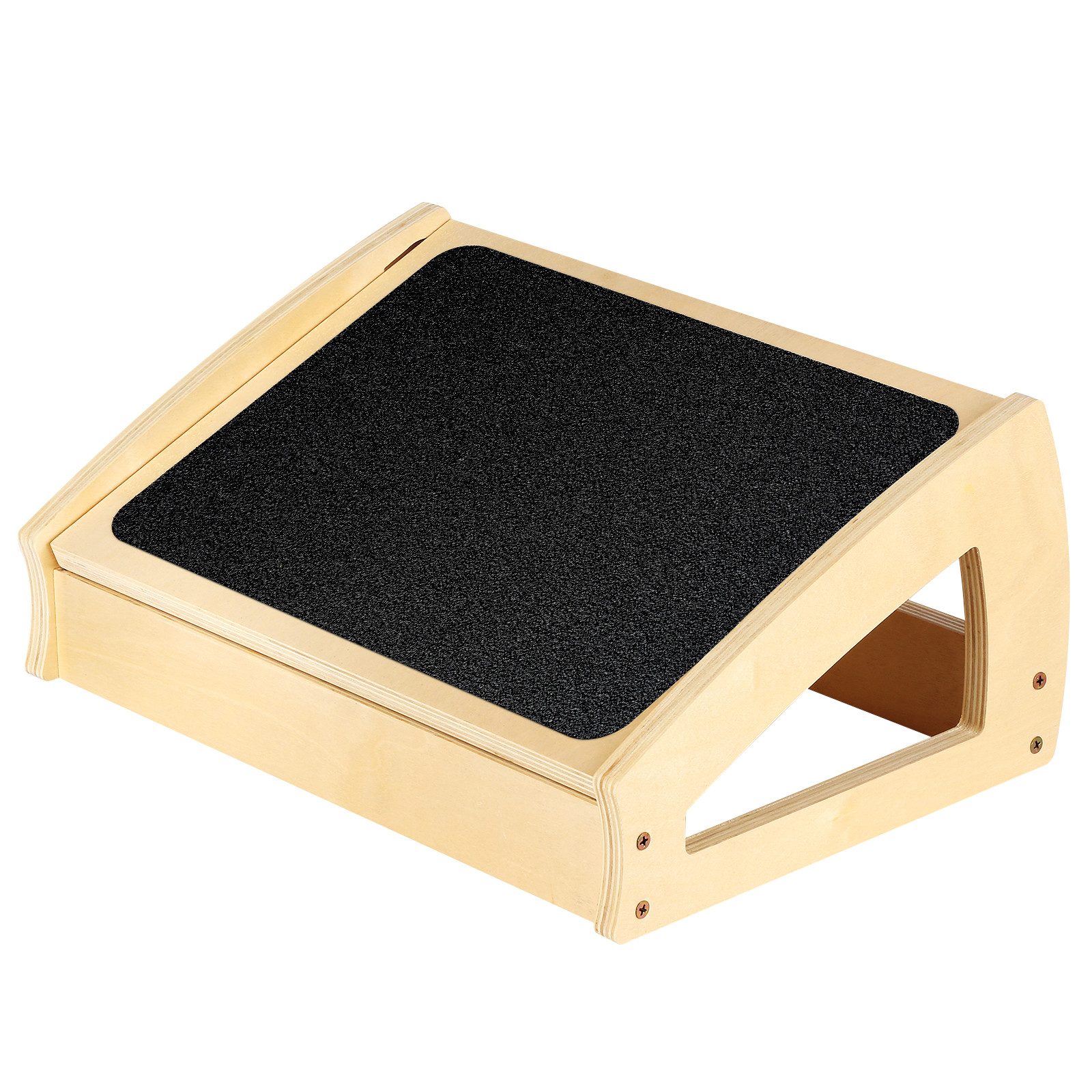 FUSSABLAGE UNTER DEM SCHREIBTISCH: Der flache Holzhocker kann nicht nur als mobiler Tritt verwendet werden, sondern auch unter Ihrem Schreibtisch als ergonomische Erhöhung, auf der Sie Ihre Füße tagsüber ablegen können.