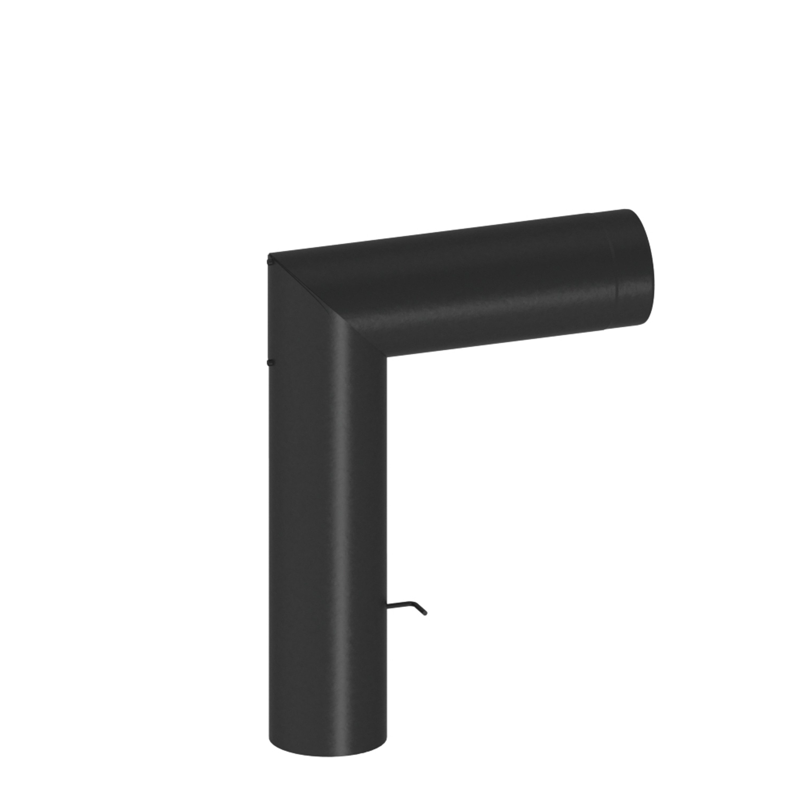Jeremias Winkelrohr mit Tür und Drosselklappe | Schenkellänge 500/700mm | Schwarz | Ø 150 mm Doppelwandige Verbindungsleitung aus Edelstahl für den Anschluss an Kaminöfen. Gedacht für den Einsatz im Wohn- und Sichtbereich und für eine trockene Betriebsweise. Technische Daten des Jeremias Ofenrohr Winkels: doppelwandiges Ofenrohr Hersteller: Jeremias Typ: ISO-Line Material: Edelstahl 1.4404 (316L) / 1.4301 (304) Wandstärke: Innen / Außen je 0,6 mm Isolierung: keramische Isolierung mit 15 mm Stärke Außendurchmesser: 180 mm Innendurchmesser: 150 mm Beschichtung: hitzefester Senothermlack Temperaturbeständig bis 450 °C Verbindung: Steckverbindung durch eingezogene Steckenden Einsatzbereich: Kaminöfen und Regelfeuerstätten für Festbrennstoffe CE-Klassifizierung nach DIN EN 1856 - 2 reduziert den Abstand von 400 mm auf 200 mm zu brennbaren Bauteilen (im Vergleich zum normalen Ofenrohr)