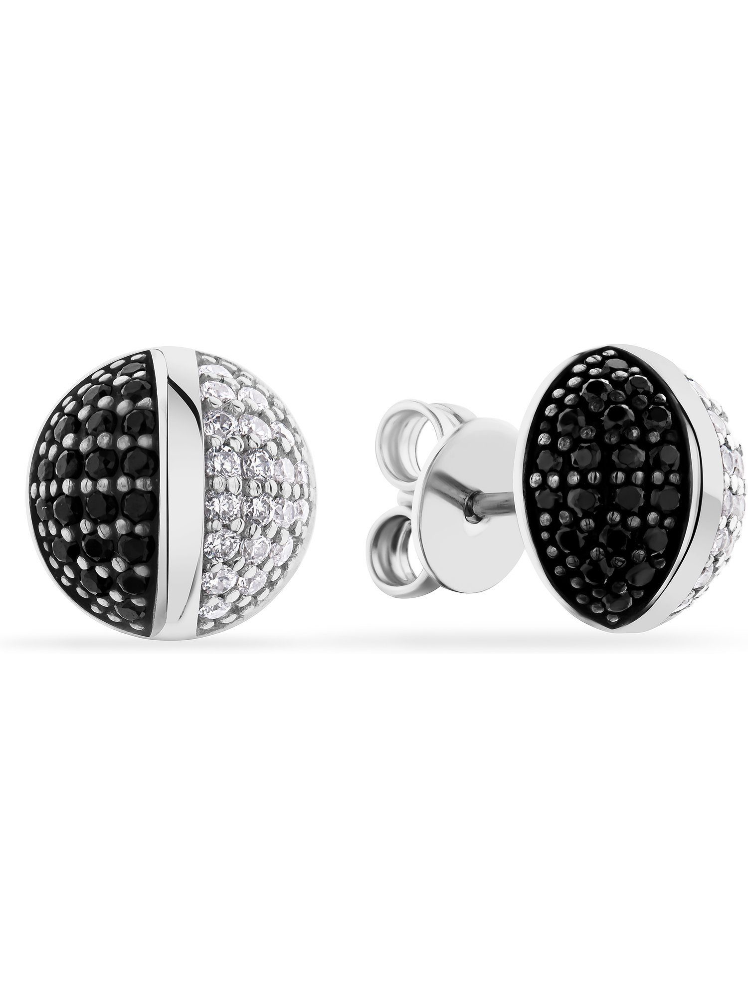 Party-Time! Bei den Ohrsteckern handelt es sich um Halbkugeln im Disco-Style. Auf einer Seite funkeln schwarze Zirkonia-Steinchen, auf der anderen Seite weiße. Dieser Look wirkt ausgewogen und markant zugleich. In der Mitte trennt ein silbernes Band die 2 Farben. Damit kreiert JETTE eine individuelle, frische Optik. Gleichzeitig unterstreicht das 925er Silber den eleganten und kombistarken Look.