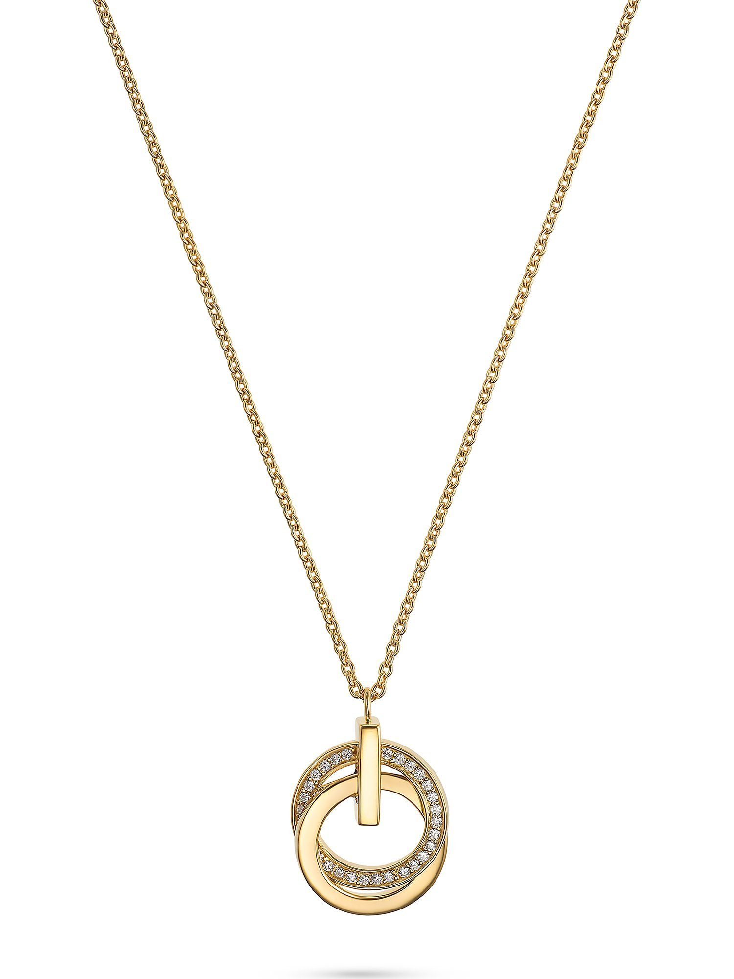 Ein Schmuckstück wie ein Versprechen ist diese Halskette für Damen aus dem Hause JETTE. Der Anhänger besteht aus 2 ineinander verschlungenen Ringen, die ein schmaler Steg miteinander verbindet. Einer der Ringe wurde auf Hochglanz poliert, der andere punktet mit zahllosen lupenreinen Zirkonia-Steinen. Das romantische Design ist in den Schmuckfarben Silber, Gelbgold und Roségold erhältlich, damit keine Wünsche unerfüllt bleiben.