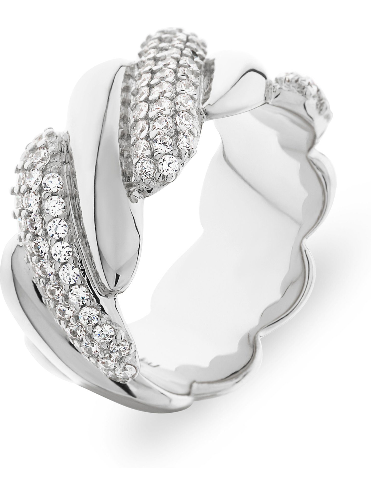 Elegant und extravagant präsentiert sich dieser gewundene Damenring von JETTE in modernem Design. Weiße Zirkonia-Farbsteine zieren zwei der Windungen und sorgen als besonderer Blickfang für den gewissen Glamour-Faktor. Als vielseitiger Allrounder lässt sich dieses Schmuckstück wunderbar zu verschiedenen Outfits, Anlässen und weiterem Schmuck kombinieren. Ein stilvoller Begleiter für jeden Tag!