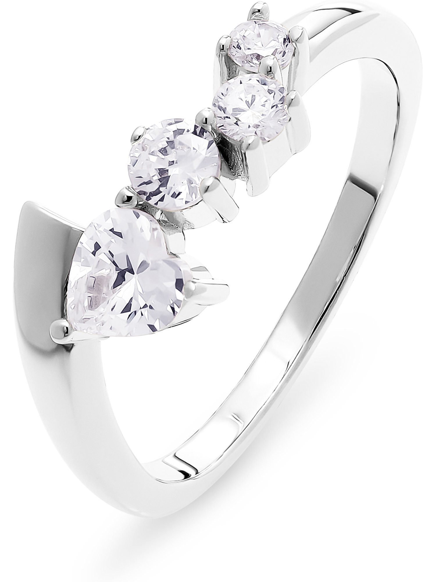 Wie ein versunkener Schatz wirkt dieser Ring von JETTE. Der aus zu 100% recyceltem Silber gefertigte Schmuck wird von vier versetzt angeordneten weißen Zirkonia geziert, die funkeln wie Sterne. Die außergewöhnliche Anordnung der Schmucksteine verwandeln den Ring in einen modernen Hingucker.