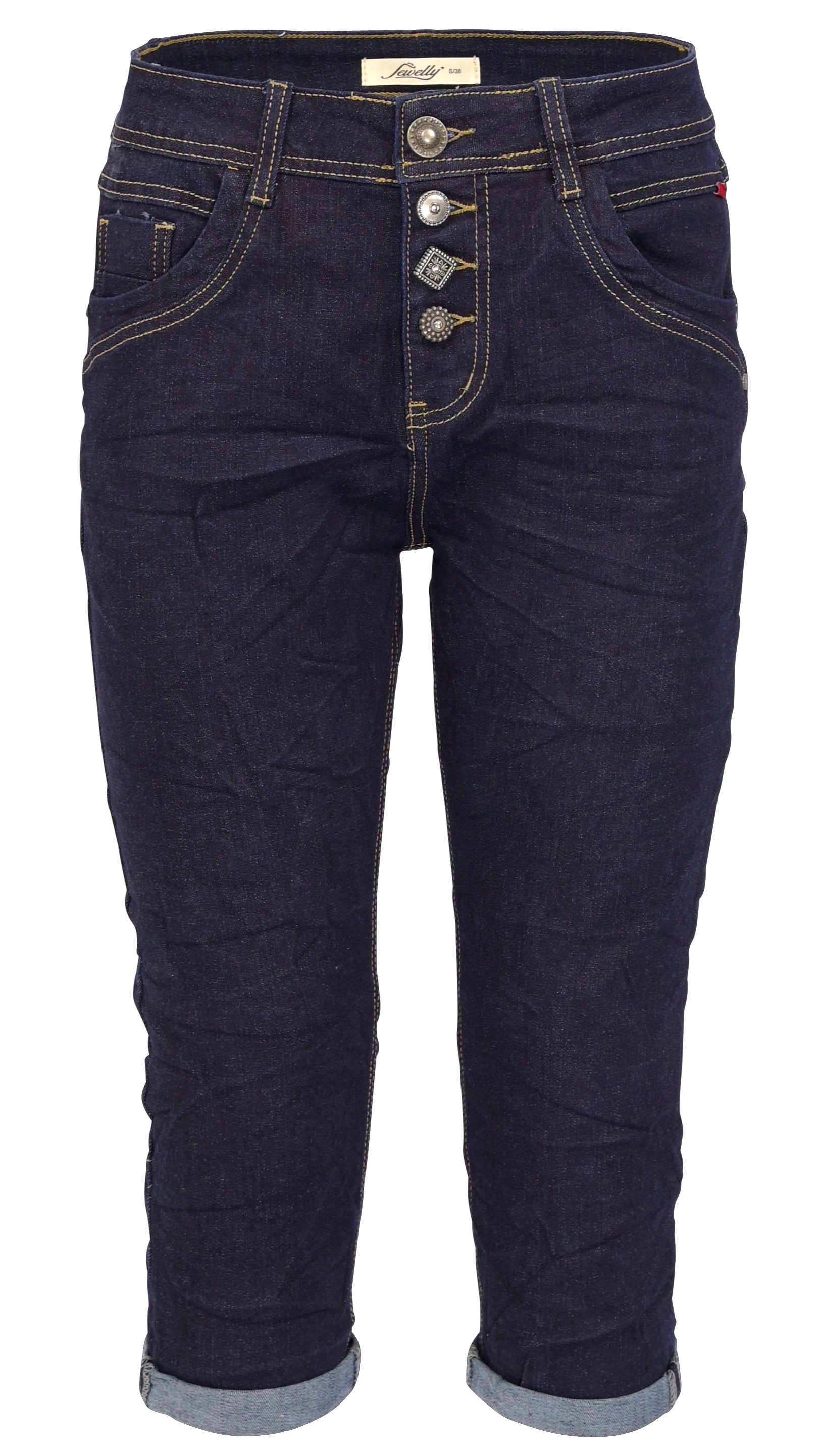 Caprihosen und Jeans sind der Trend in diesem Sommer – die Kombination aus den beiden Trends ein absolutes Must-Have für jede Fashionista. Diese Capri-Jeans ist einfach perfekt: klassisches Five-Pocket-Design, Crashed-Optik, sichtbarer Button-Fly und fixierte Turn-Ups. Die weiche Baumwollqualität mit Elastananteil trägt sich sehr angenehm und ist super bequem. Diese Hose ist ein Всеskönner: sie passt zu jeder Figur und lässt sich in jede Richtung nach Lust und Laune stylen. Wenn du noch keine Jeans-Capri in deinem Schrank hast, wird es jetzt höchste Zeit!