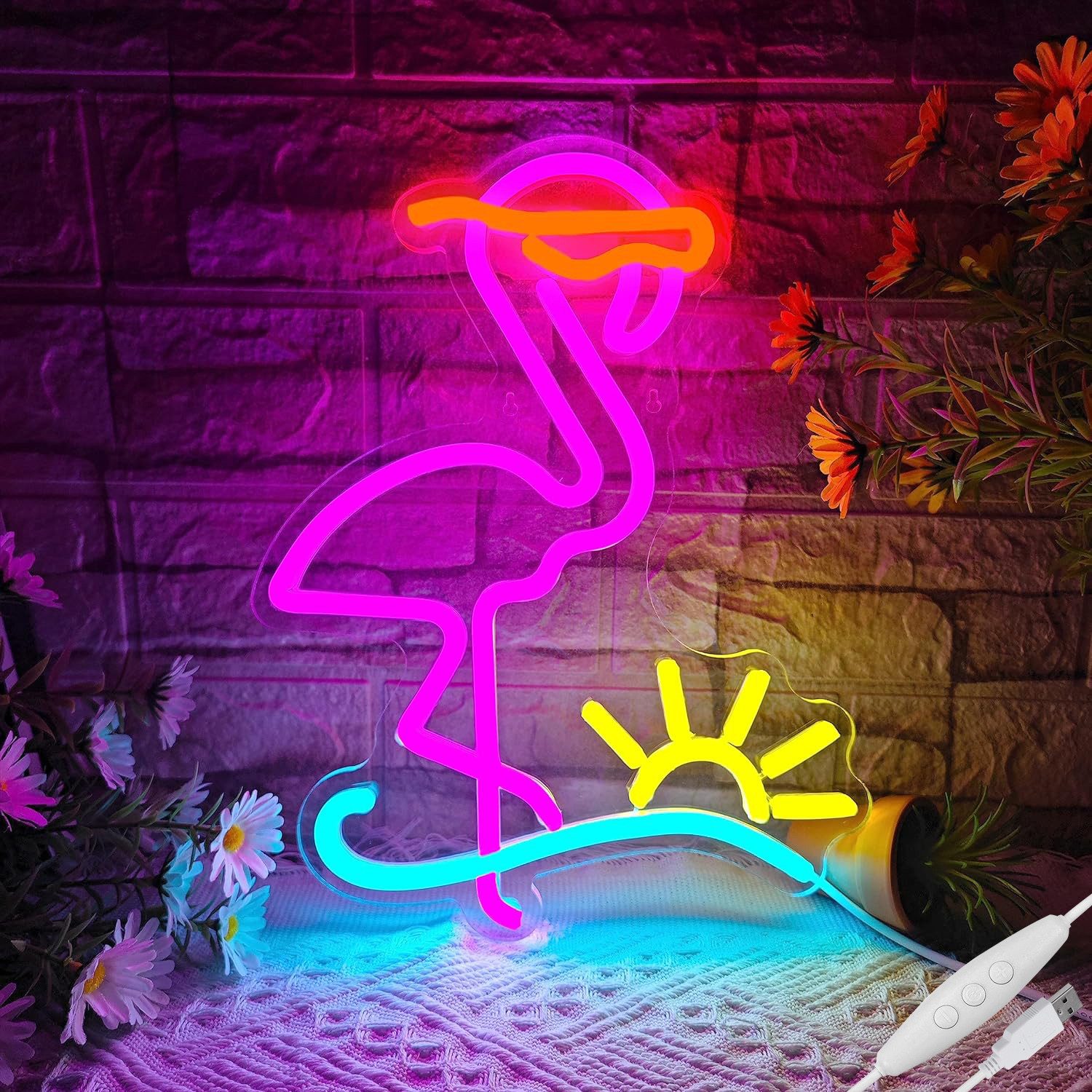 Neon-Styling: BAR Neonschild, Flamingo, Gelbes Lächelgesicht, Rosa Lächelgesicht, Spieltaste, Gamepad