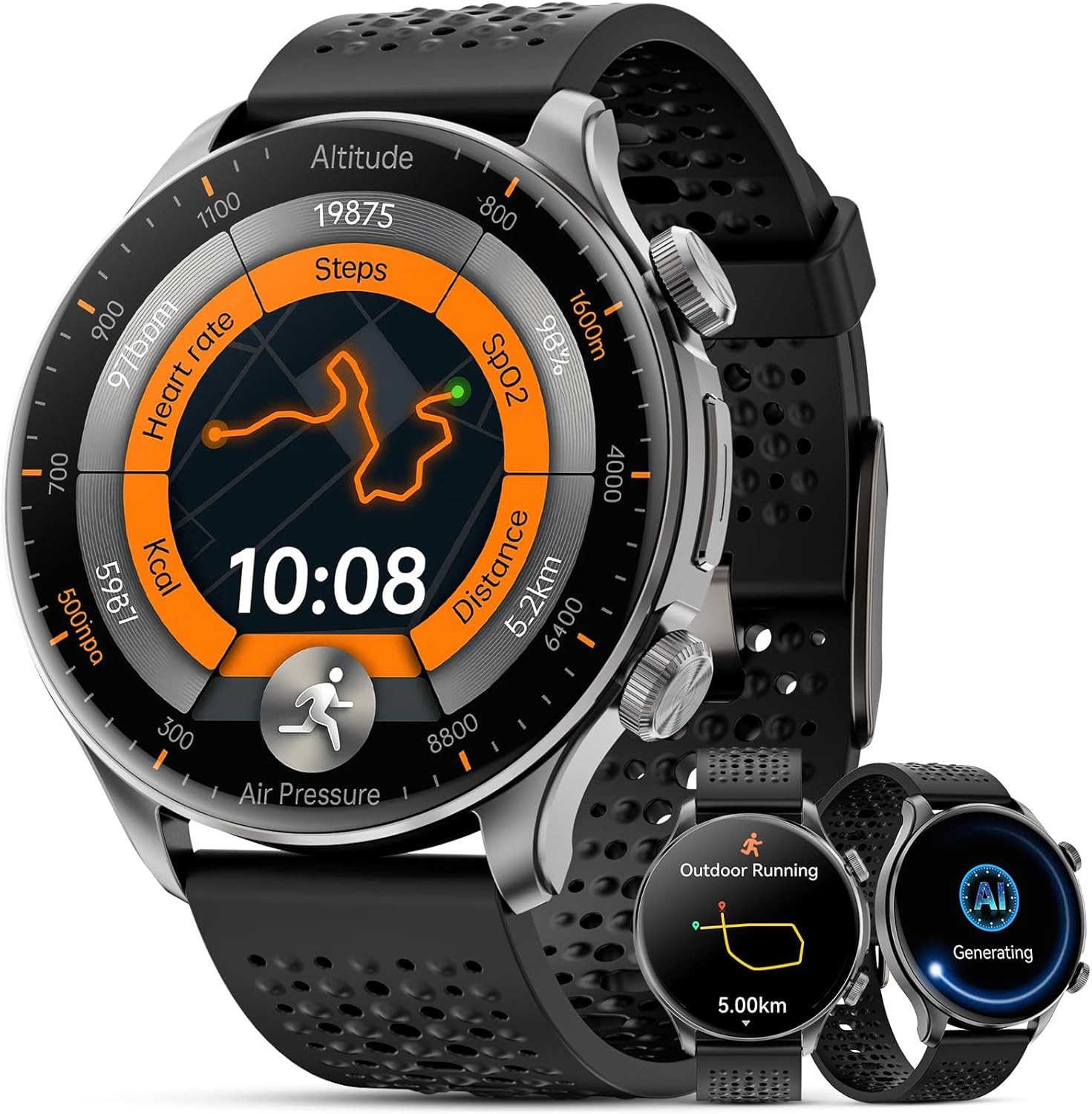 Diese hochwertige Herren-Smartwatch ist mit integriertem GPS ausgestattet, das auf einer energieeffizienten Einfrequenz-Technologie basiert. Unterstützt werden mehrere globale Ortungssysteme wie Glonass, Beidou, Galileo, Navic und QZSS, wodurch eine schnelle und präzise Positionsbestimmung bei allen Outdoor-Aktivitäten gewährleistet ist. Zusätzlich bietet die Uhr einen Höhenmesser, ein Barometer zur Luftdruckmessung sowie einen digitalen Kompass – perfekt für Wanderungen, Bergtouren oder längere Läufe in unbekanntem Gelände.