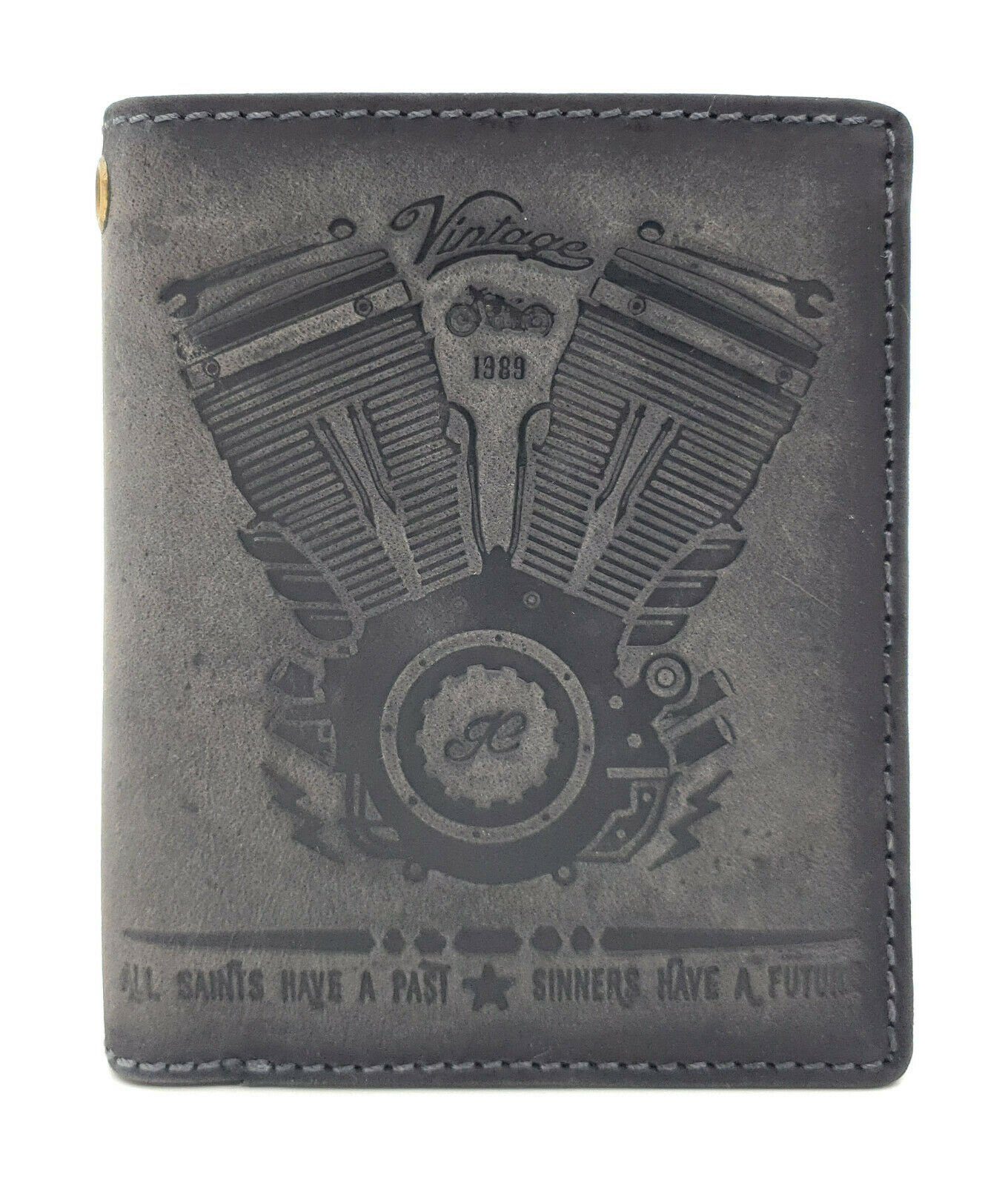 Hochwertige Leder Geldbörse "Motorblock" mit geprägtem Zweizylinder-Motorrad-Motor