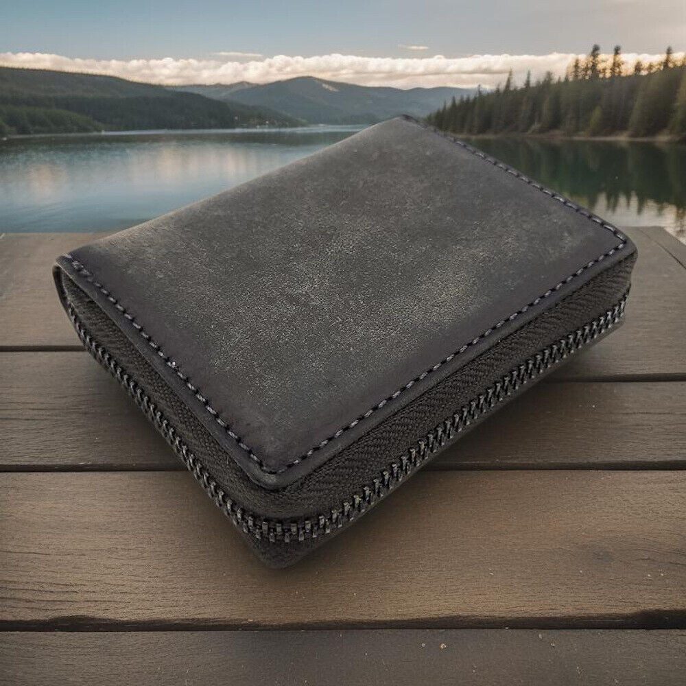 Entdecken Sie die kompakte Reißverschlussgeldbörse aus rustikalem Büffelleder mit RFID-Schutz!