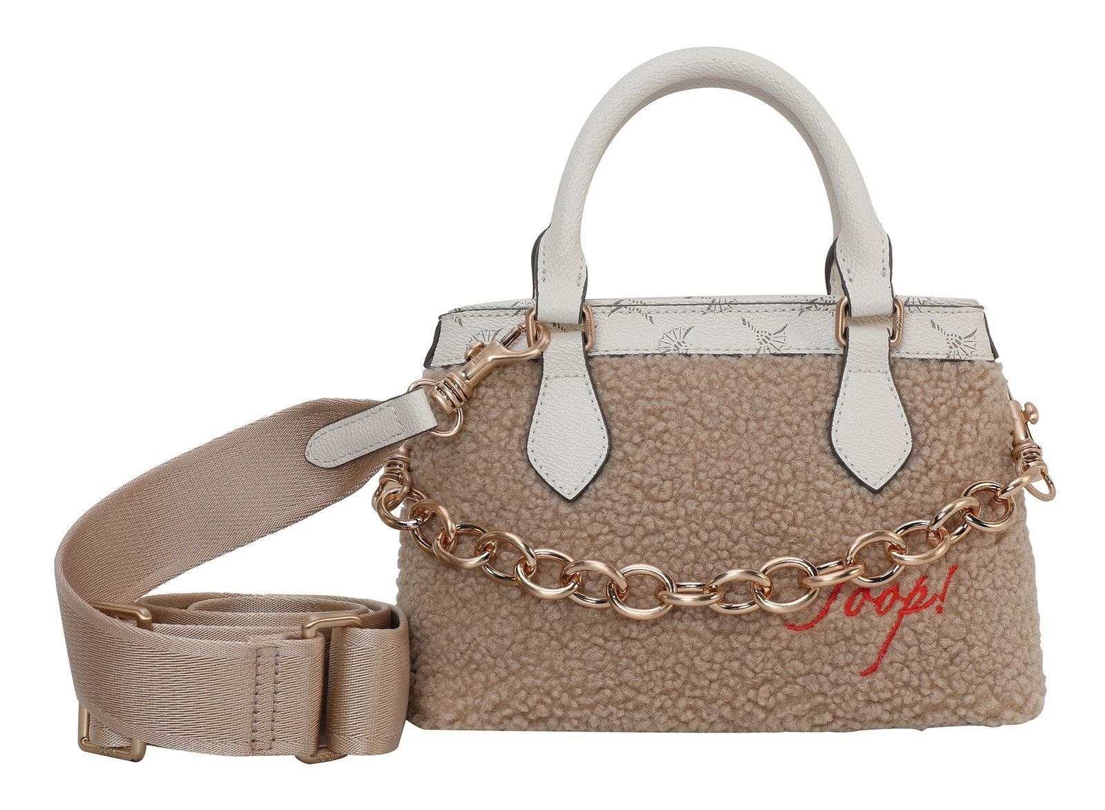Diese schicke JOOP! Cortina Peluche Handtasche ist der perfekte Begleiter für Sie! Diese Tasche kann als Handtasche durch die zwei Henkel, oder durch den abnehmbaren Ketten-Henkel getragen werden. Wollen Sie beide Hände freihaben, können Sie die Tasche dank des stufenlos verstellbaren Schulterriemens als Umhängetasche tragen und ungestört Ihren Alltag bewältigen. Die Rückseite der Tasche hält sich in einer modernen Felloptik, was diese Tasche neben der hochwertigen Qualität einzigartig macht. Die JOOP! Cortina Peluche Romea Handbag besitzt ein geräumiges Hauptfach, das sich perfekt für Ihre Wertsachen und andere Kleinigkeiten eignet.