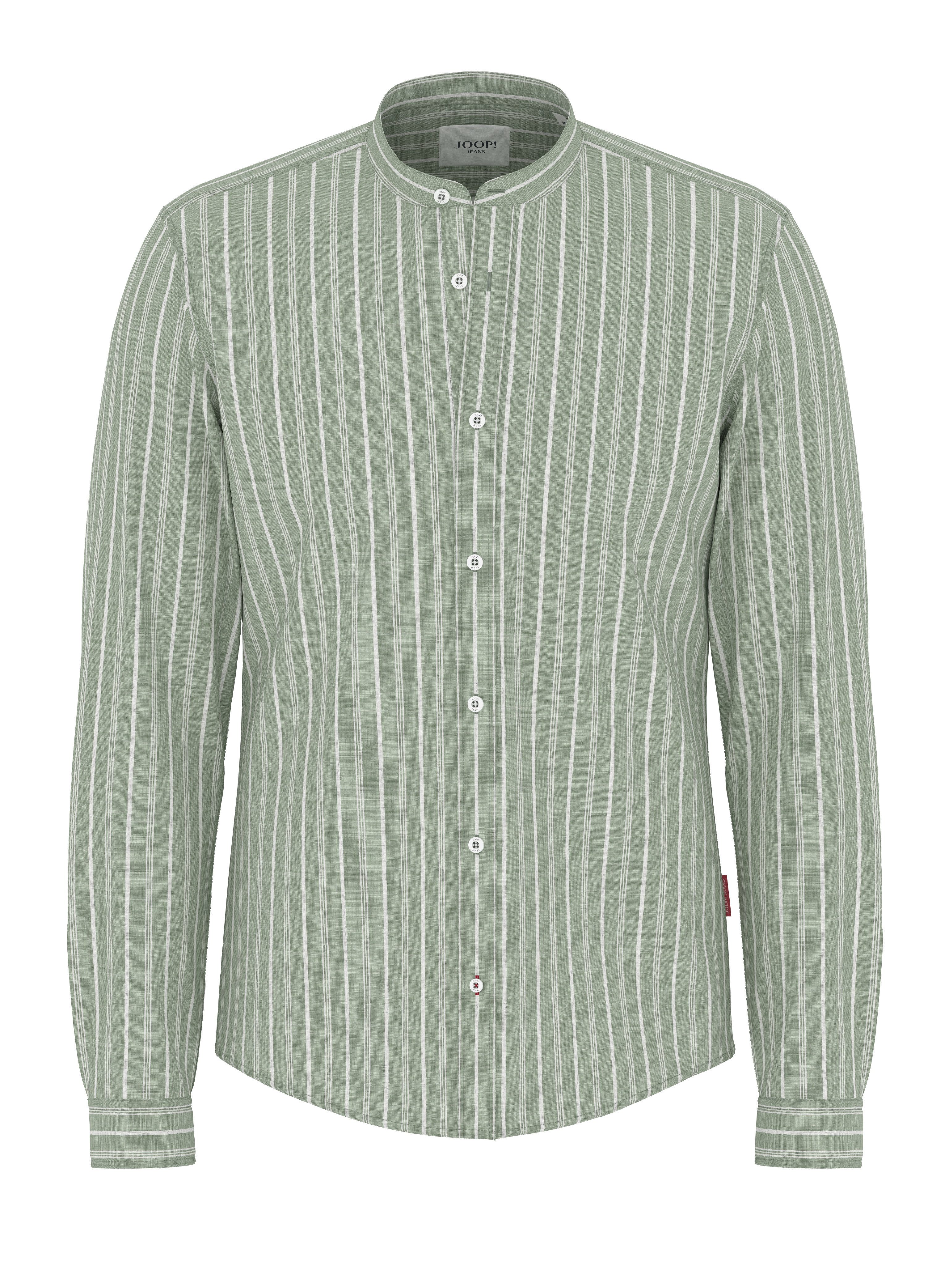 Mit dem Langarmhemd »Hedde-W« von Joop Jeans lassen sich schnell neue Styles kombinieren. Der Stehkragen steht nach oben und liegt am Hals an, wodurch du legere Freizeit-Outfits kombinieren kannst. Die langen Ärmel mit Schlitz erleichtern das An- und Ausziehen. Sie enden in einer geknöpften Manschette. Dieses Hemd hat einen Rundhalsausschnitt und ist normal sowie basic geschnitten und umspielt deinen Oberkörper locker. Das Oberteil hat ein eingesetztes Stoffteil, eine sogenannte Passe, die mehr Raffinesse in den Schnitt bringt.