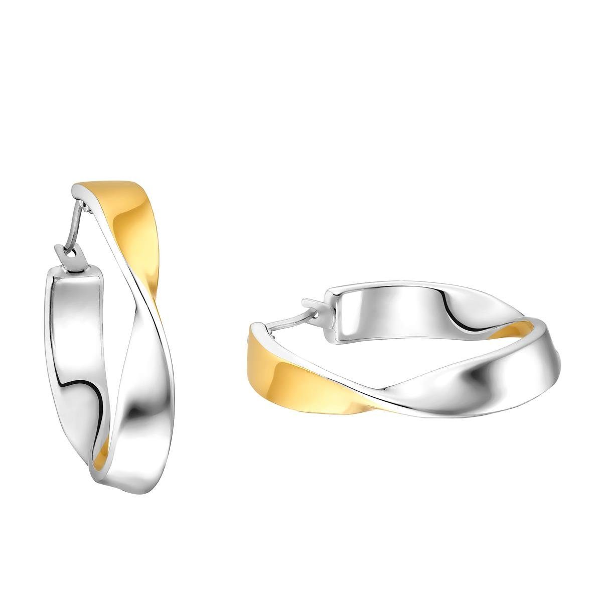 In strahlender, Bicolor Optik präsentieren sich diese geschwungenen Damen Creolen von JOOP!. Das geschwungene Design wird optisch durch die Farben Gold und Silber unterstützt und sind hervorragend zu jedem anderen Schmuck kombinierbar. Die Ohrringe wurde aus polierten Edelstahl gefertigt und haben teilweise eine IP Gold Beschichtung.