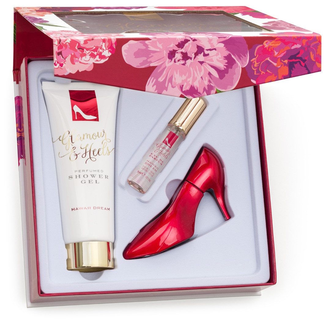 30ml + 15ml Eau de Parfum + 120ml Duschgel - stylischer Schuh Flakon + 15ml Handtaschen Flakon.