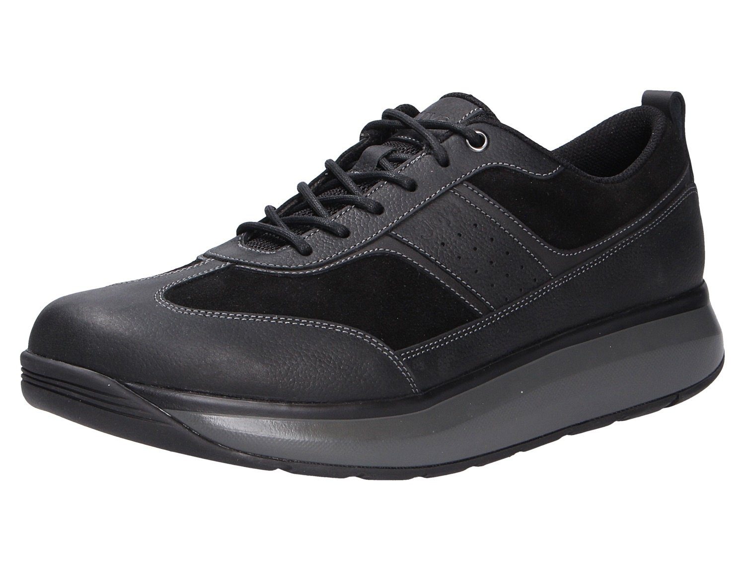 Für den comfort verwöhnten Herrn ist das Modell DAVID II BLACK II aus dem Hause JOYA mit einem hohen Tragecomfort genau das richtige. Das Obermaterial ist aus einer hochwertigen Glatt-Nubukleder Kombination(Premiumleder). Auch die textile Innenverarbeitung überzeugt durch ihre angenehm weiche Beschaffenheit. Die patentierte Ortholite Support Einlegesohle ist sehr leicht und stark atmungsaktiv. Sie besteht aus einem PU-Schaum mit EVA-Verstärkung im Fersen- und Mittelfußbereich für zusätzliche Stabilität.Natürlich ist die Sohle herausnehm- und auswechselbar. Der Schnitt ist für breitere Füße (Weite H) geeignet. Der Absatz ist durchgehend flach ,die Sohlenkategorie emotion steht für Freude am Stehen und Gehen.Die weich-elastische Joya Sohle dämpft jeden Stoß ab und unterstützt dadurch effektiv die Entlastung von Rücken und Gelenken. Das Ergebnis: ein einzigartiger Gehkomfort. Ideal für Menschen, die sich und ihre Füße mit einem einzigartig weichen Geh-Gefühl verwöhnen wollen.Die emotion-SENSO Technologie ist besonders weich im Fersen- und Vorfußbereich und bietet durch die starke Dämpfung eine optimale Entlastung.Besonders geeignet für Menschen mit sensiblem Rücken und täglich stark belasteten Füßen und Gelenken. Eine praktische Schnürung vollendet den klassischen Look und erleichtert Ihnen den Einstieg. Durch die runde Schuhspitze wirkt der Schuh dezent am Fuß und bietet genügend Platz für die Fußzehen. Die Размер обуви fällt regulär aus.