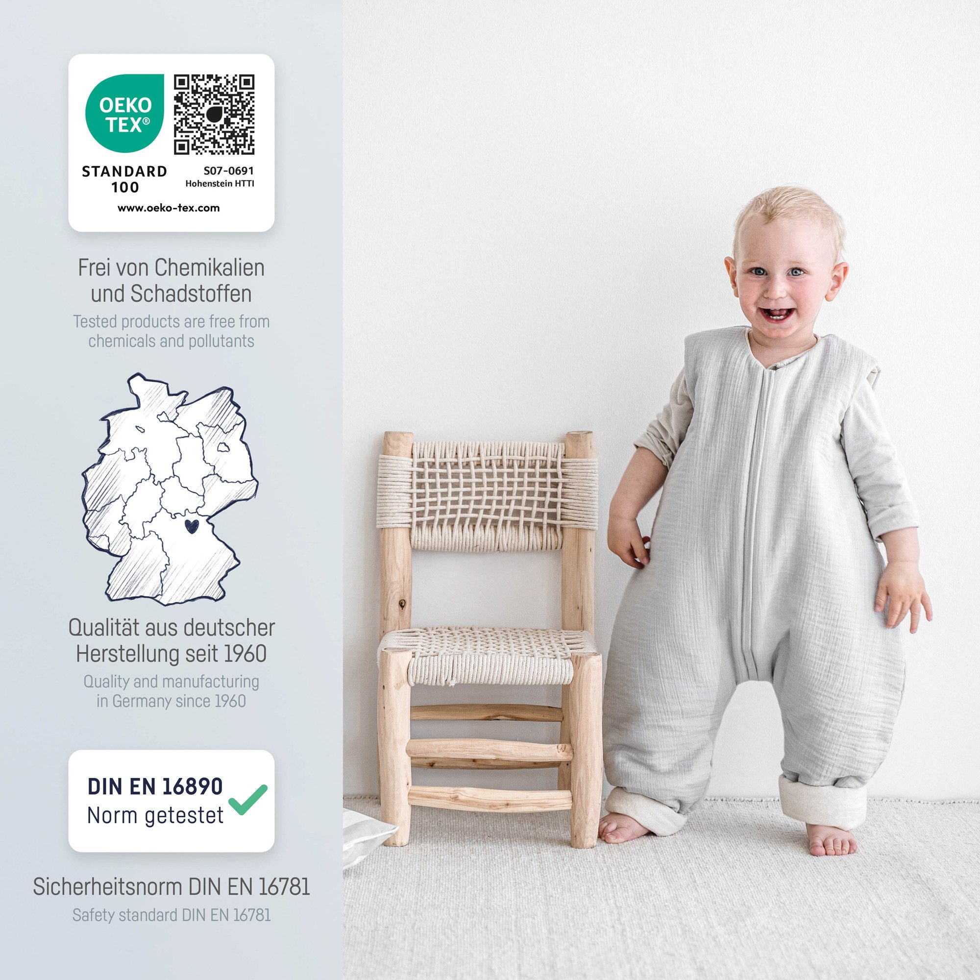 Der Schlafoverall "Jumper" wurde für aktive Kinder konzipiert. Der Overall aus weichem Baumwollmusselin ist besonders anschmiegsam und sanft zur Haut. Der robuste, mittlere Reißverschluss erleichtert das An- und Ausziehen und ist ebenfalls für größere Kinder geeignet. Der Musselin Jumper ist perfekt geeignt für den Sommer. Der Jumper besteht aus 100% Baumwollmusselin. Der Julius Zöllner Jumper ist schadstoffgeprüft nach , hergestellt in Deutschland und kann in der Waschmaschine bei 40°C gewaschen und im Trockner (Schongang) getrocknet werden.