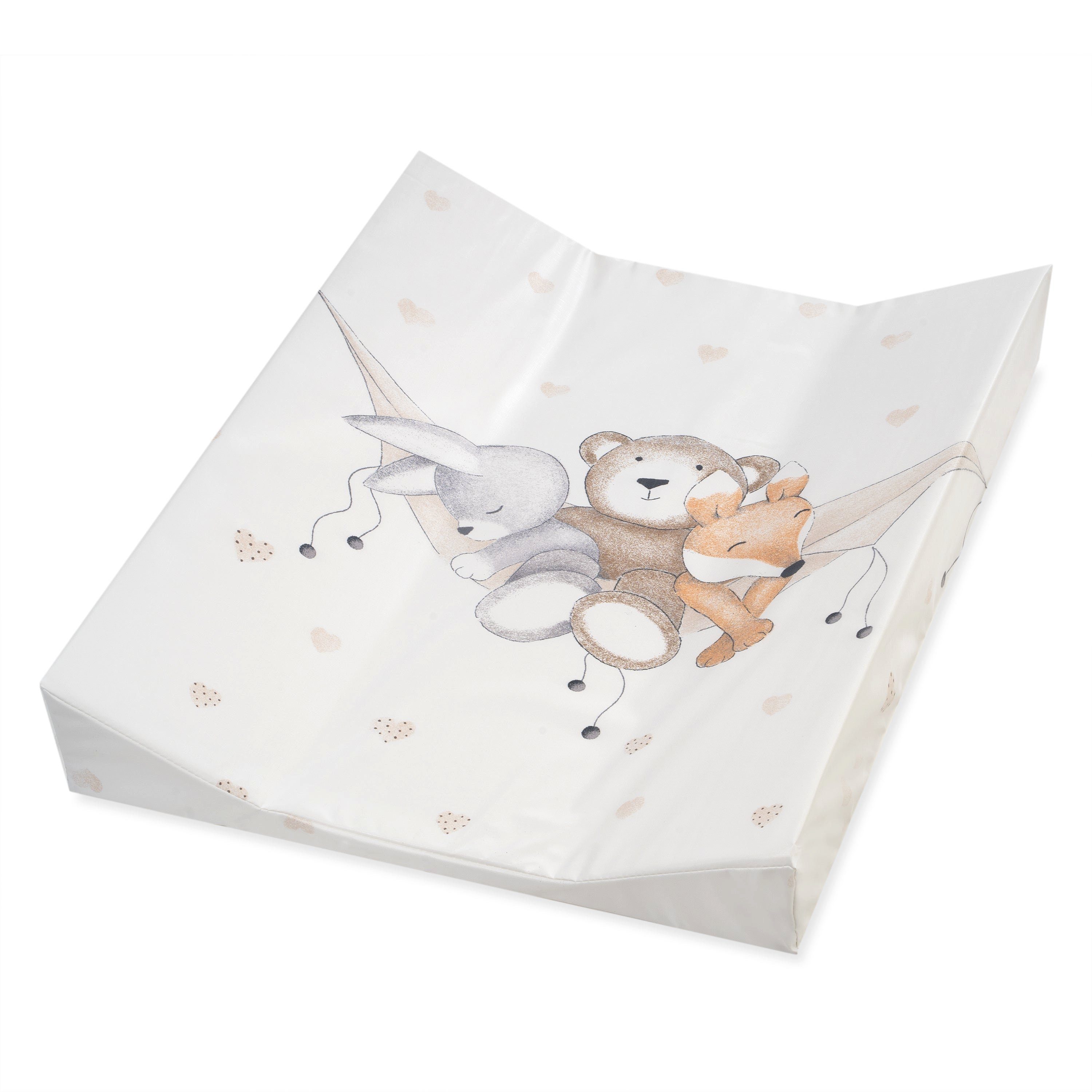 Die 2-Keil Mulde sorgt für eine weiche Polsterung und einen sicheren Halt beim Windeln wechseln. Durch die seitlichen Keile liegt das Baby auch auf schmalen Wickeltischen sicher. Die phthalatfreie Folie im liebevoll gestalteten Design ist praktisch und pflegeleicht zugleich. Phthalatfreie, pflegeleichte Folie lässt sich einfach feucht abwischen. Füllung aus Polyetherschaum mit 2-seitigem Keil für besseren Halt beim Wickeln. Kontakt mit Baby-Öl sowie chemischen oder alkoholhaltigen Reinigern vermeiden! Zur Reinigung ausschließlich feuchtes Tuch mit Neutralseife! Zertifiziert mit