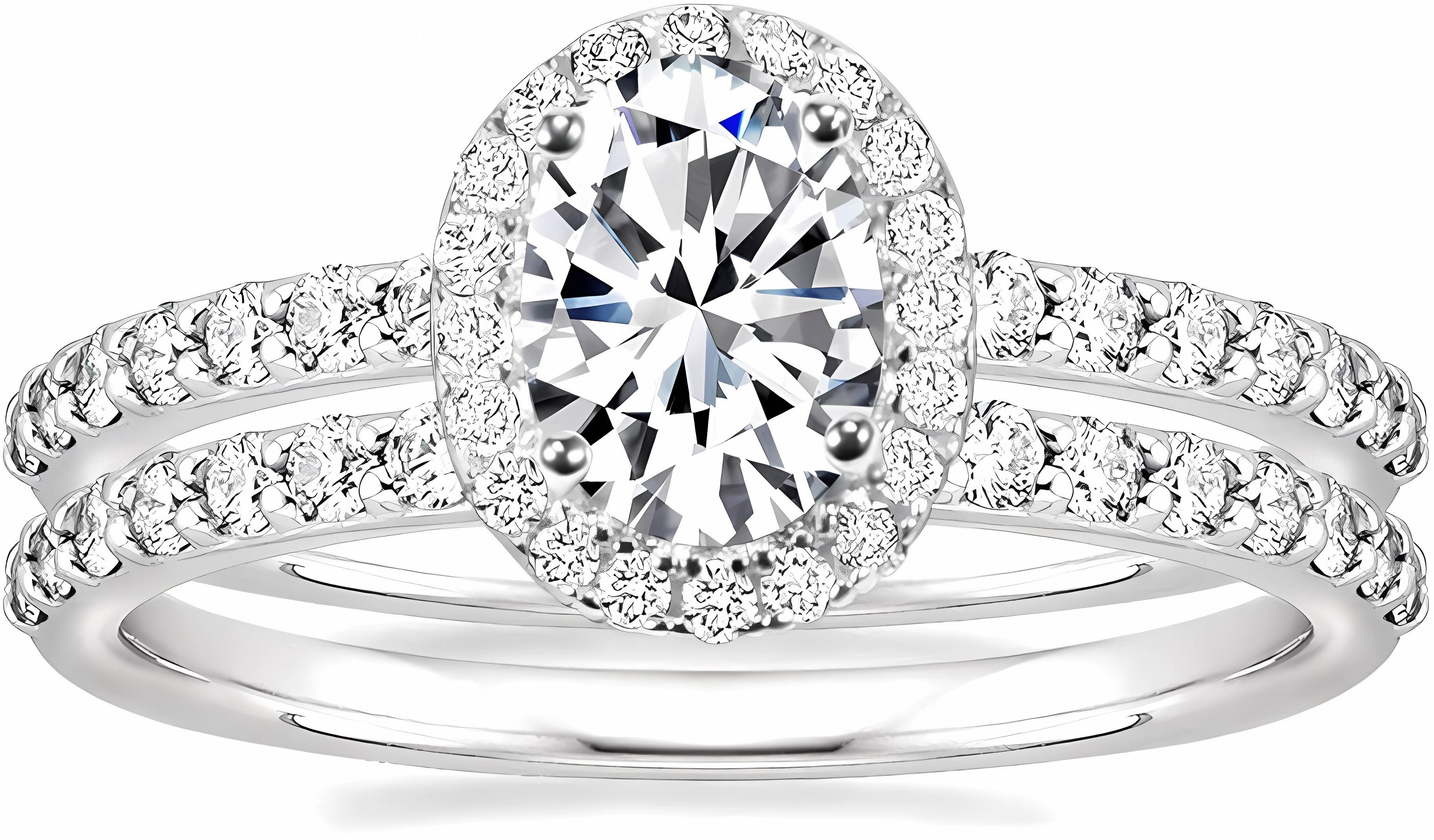 Der Hauptdiamant ist von einem zarten Cluster kleinerer Diamanten umgeben, der den Diamanten optisch hervorhebt