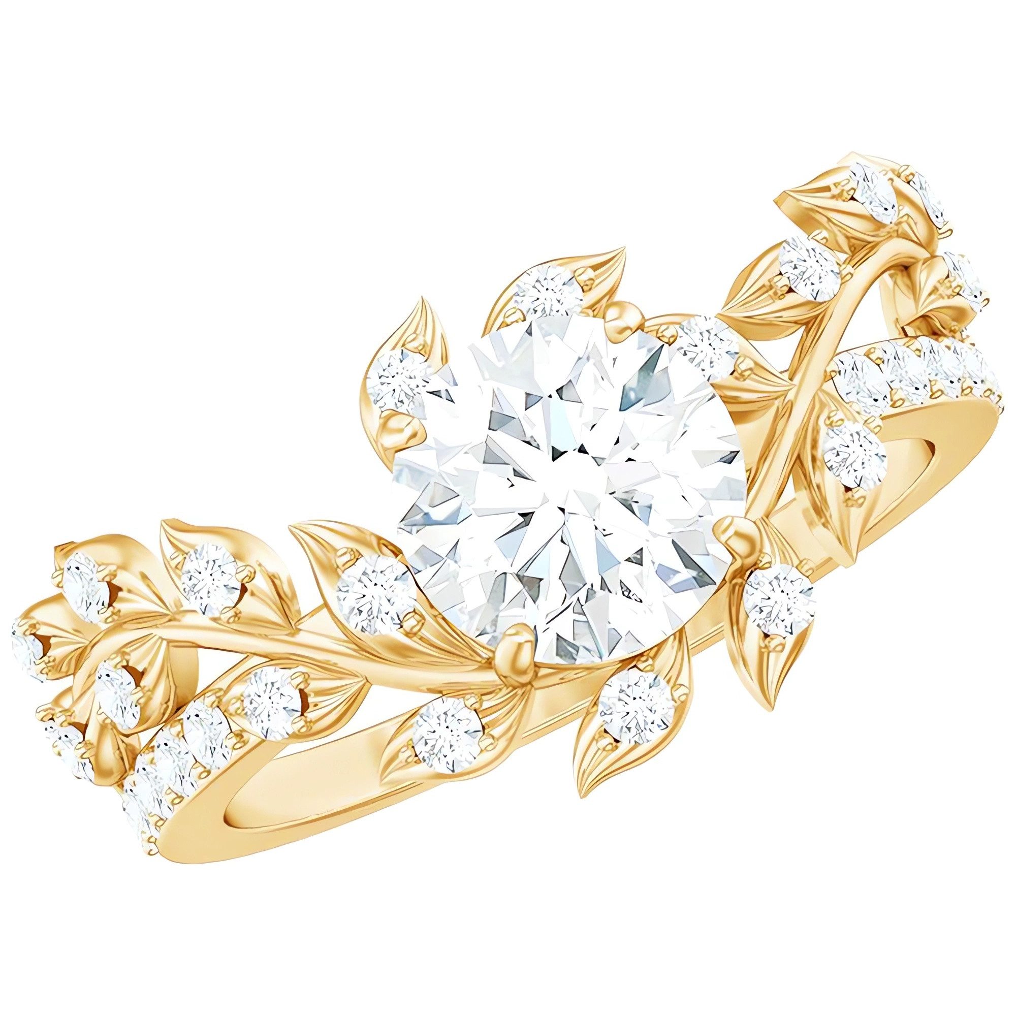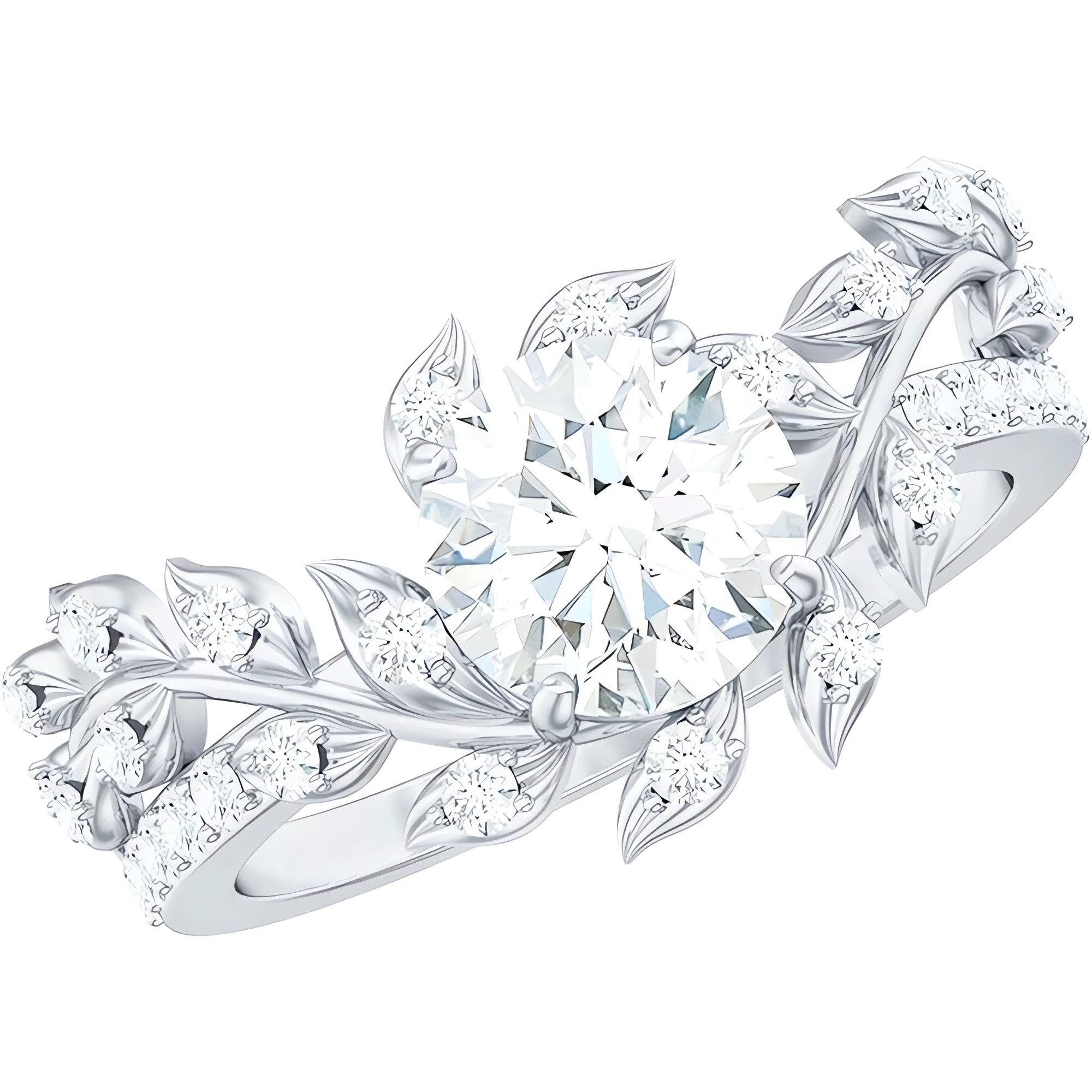 Der zentrale rundgeschnittene Labordiamant misst 2 Karat mit den Qualitätsmerkmalen E VVS2 3ex, was für herausragende Brillanz und Reinheit steht