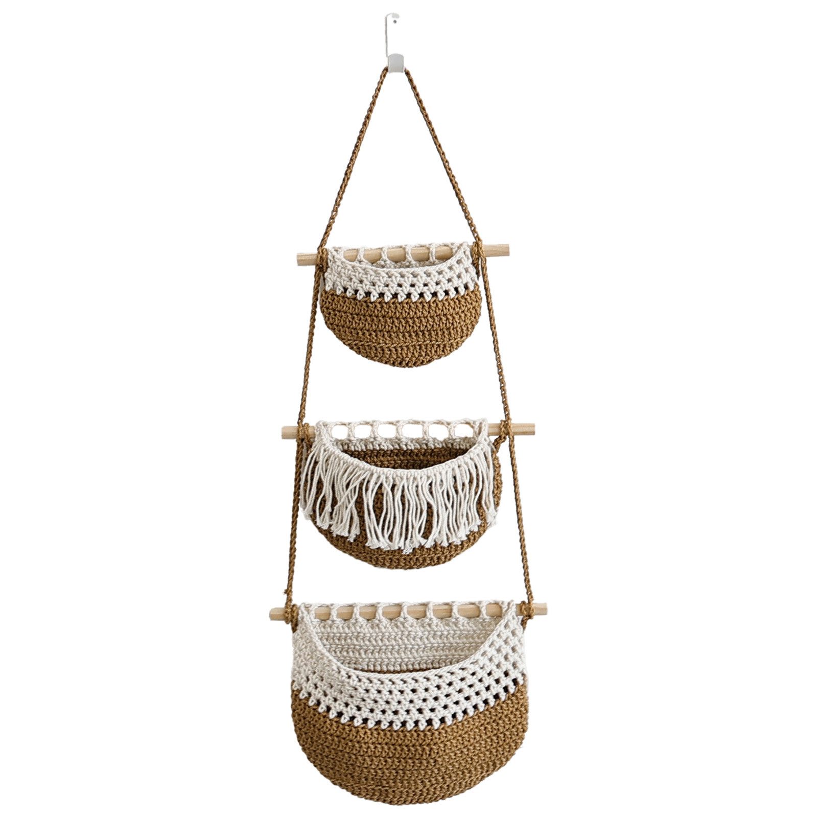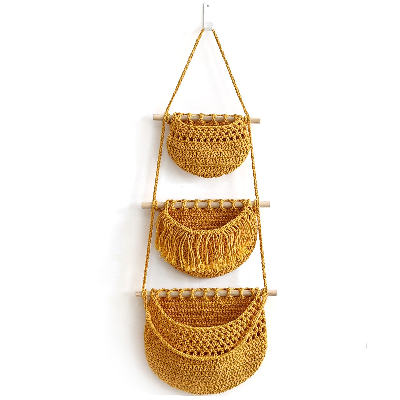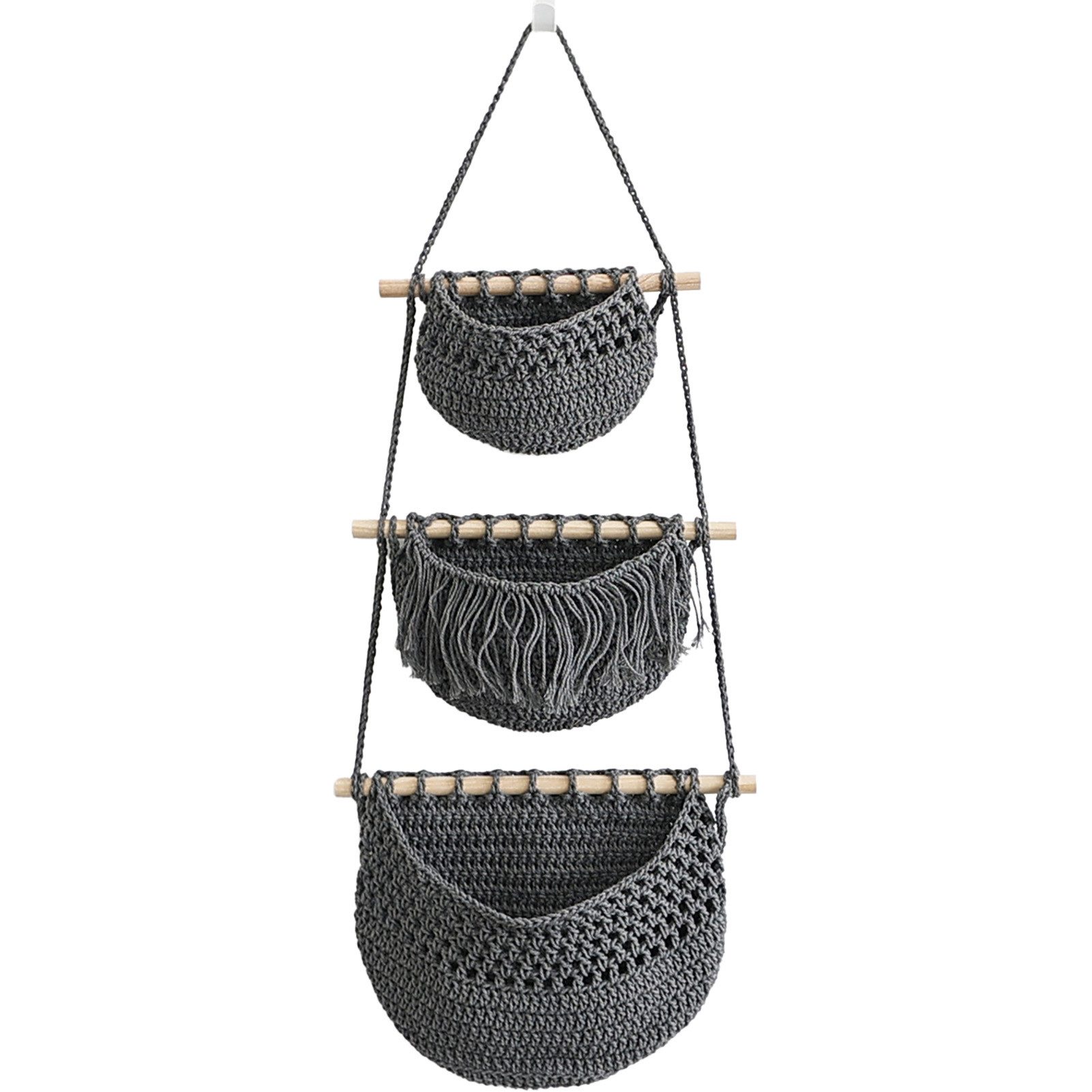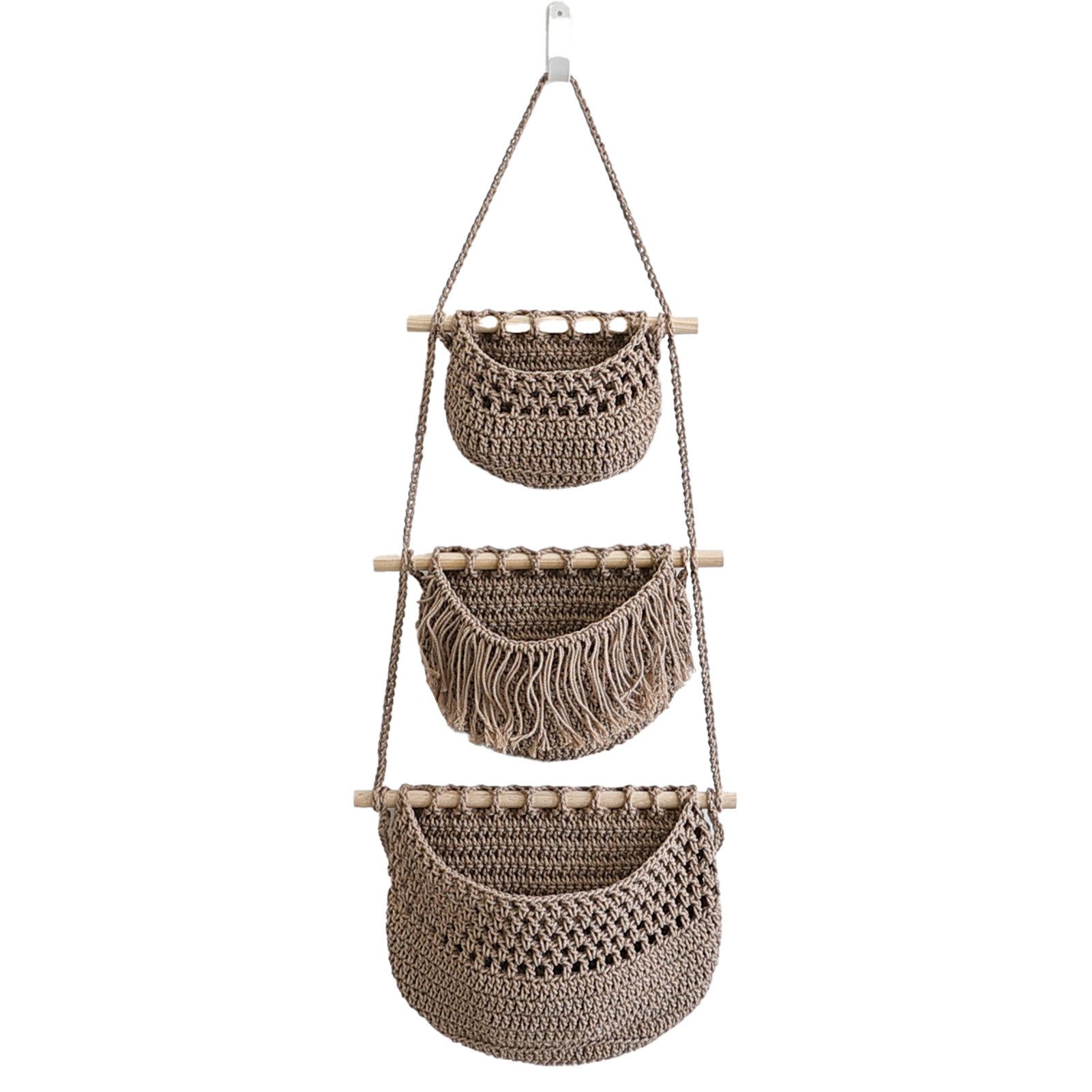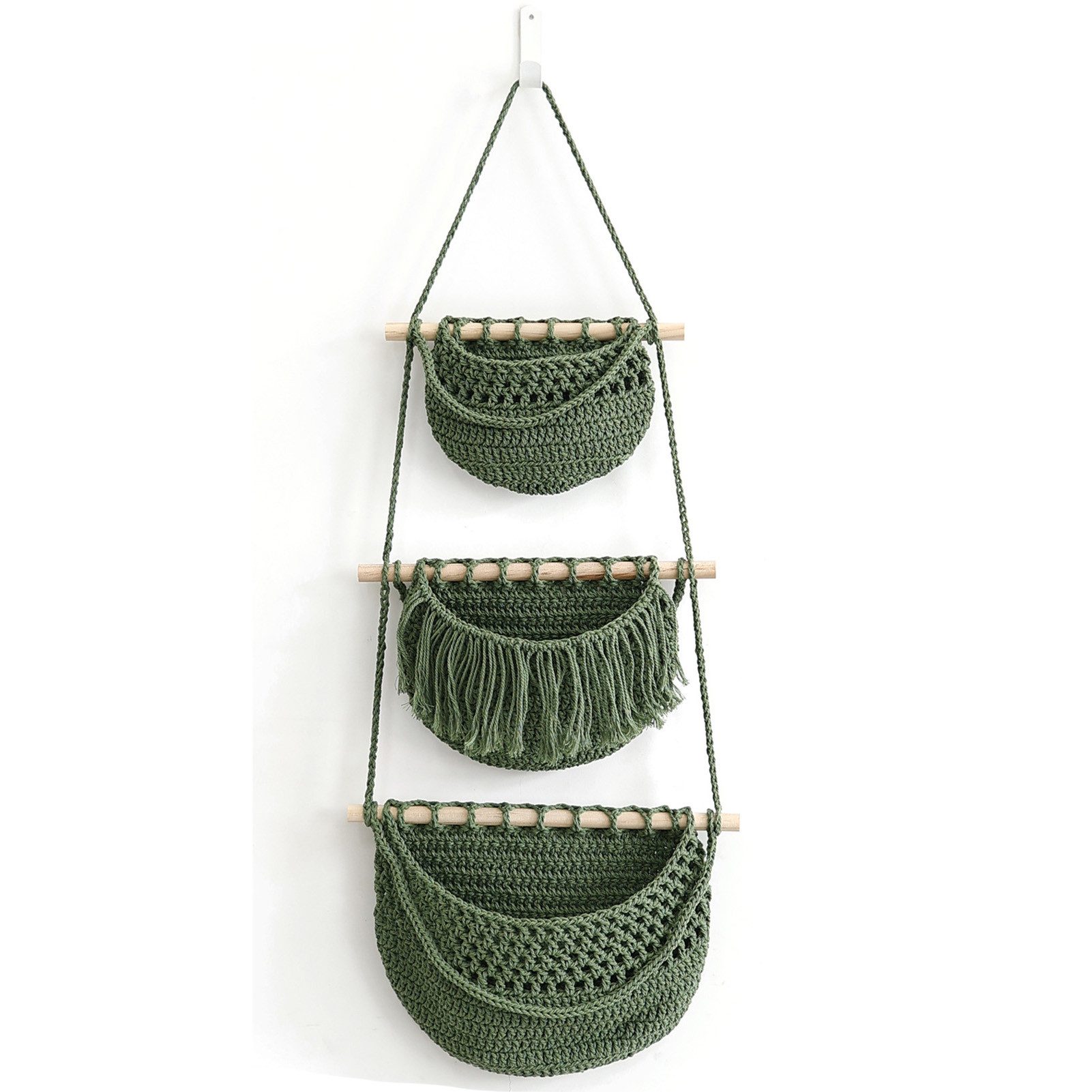3 Reihen gewebter Hängetaschen, die sich perfekt für die Aufbewahrung kleiner Gegenstände eignen und Ihrem Heimdekor einen modernen Touch verleihen
