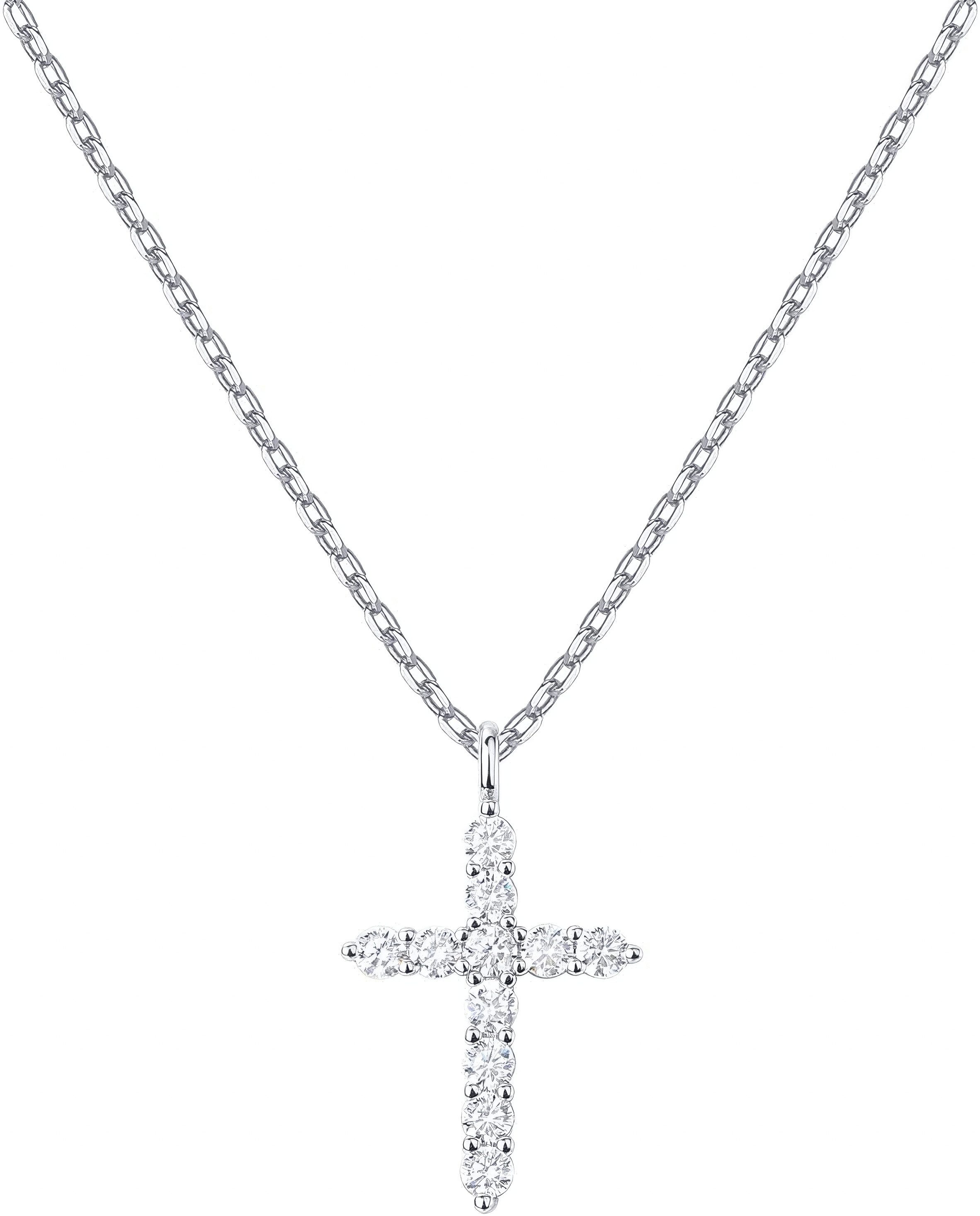 MATERIALIEN: Diese exquisite, handgefertigte Diamant-Halskette aus 14 Karat Weißgold ist robust und glänzend und wird durch den beliebten Kreuz-Stil aufgewertet!