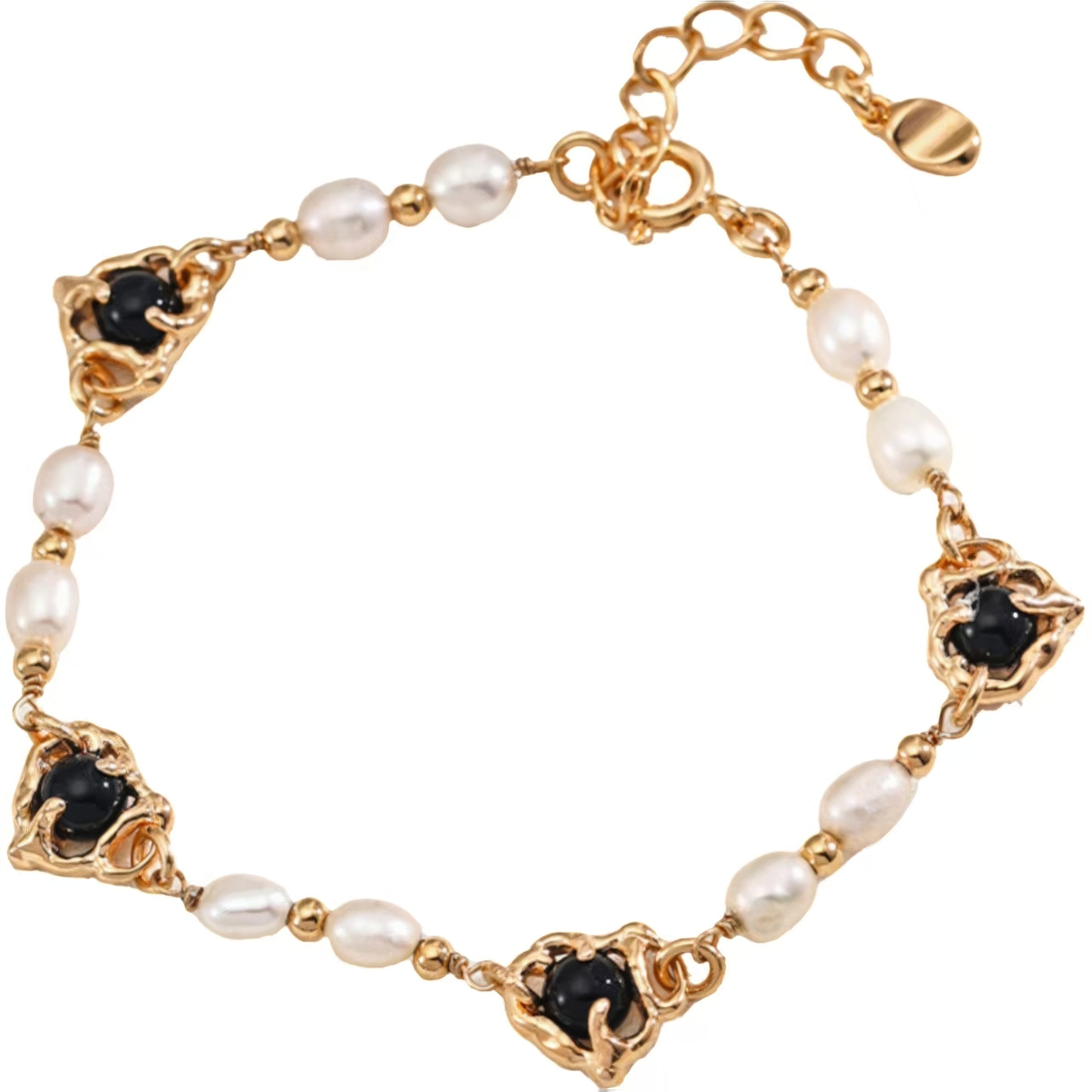 Jumpeak präsentiert ein wunderschönes Sterling Silber Perle Onyx Armband in einer stilvollen Geschenkbox, das perfekte Geschenk für eine Schwester oder Ältere!