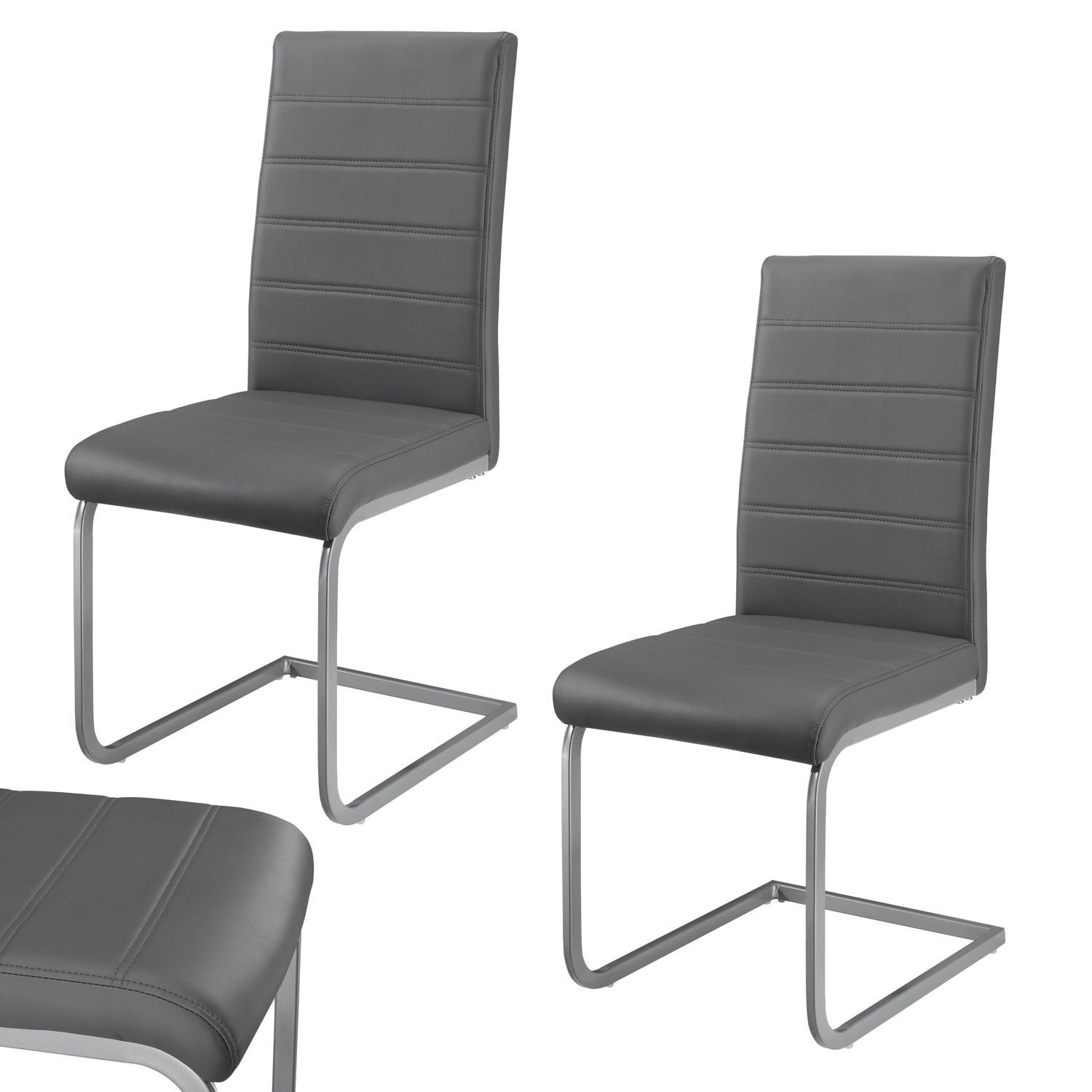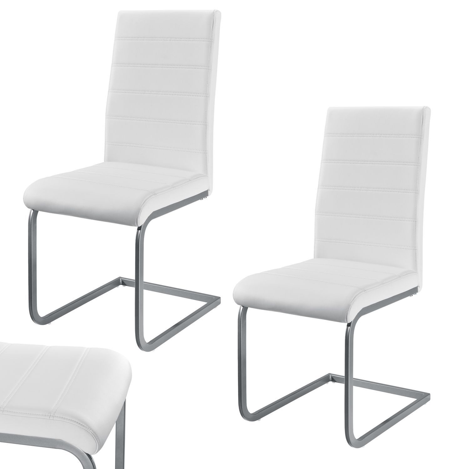 Sie möchten beim Sitzen leicht schwingen? Mit Körperdruck bringen Sie das 2er-Set Freischwinger Stuhl Vegas (Braun) in kleine Schwingungen und beugen so einer steifen Sitzhaltung vor. Verbringen Sie hier gemütliche Stunden mit Ihrer Familie oder Freunden! Gefertigt ist der stabile Esszimmerstuhl aus Metall und weichen Polstern mit Kunstleder-Bezug. Optisch überzeugt der elegante Schwingstuhl in Esszimmer, Küche, Wohnzimmer oder Arbeitszimmer. Mit der schlichten Lederoptik verleihen die modern gestalteten Esstisch Stühle einen stilvollen Charme und zeigen sich überaus pflegeleicht. Das Set ist zudem günstig und schnell aufgebaut.