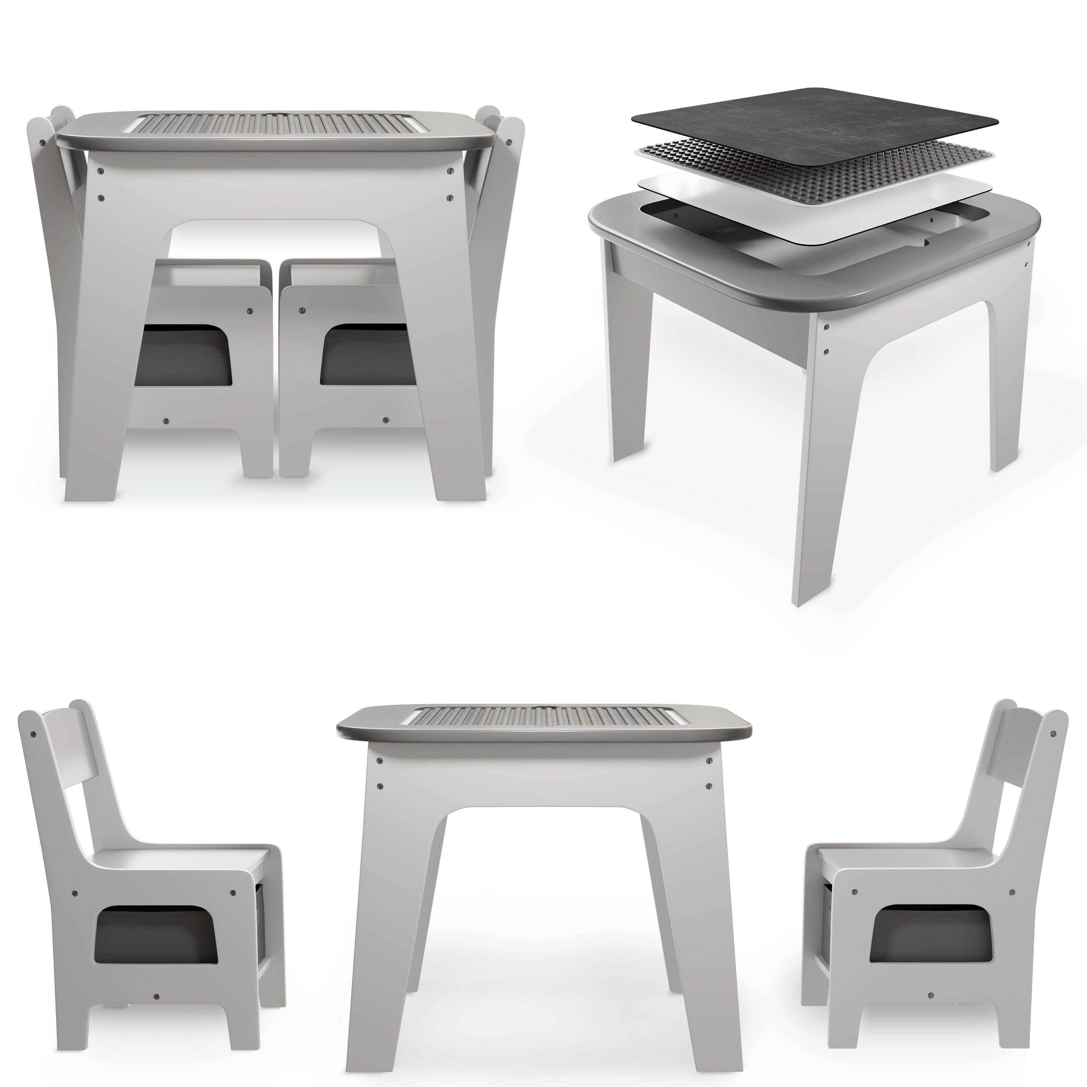 Der multifunktionale Spieltisch beeindruckt: Mit 2 Platten bietet er viele Möglichkeiten zum Spielen: Vom Malen auf dem Whiteboard oder der Tafel bis hin zum Bauen mit Bausteinen.