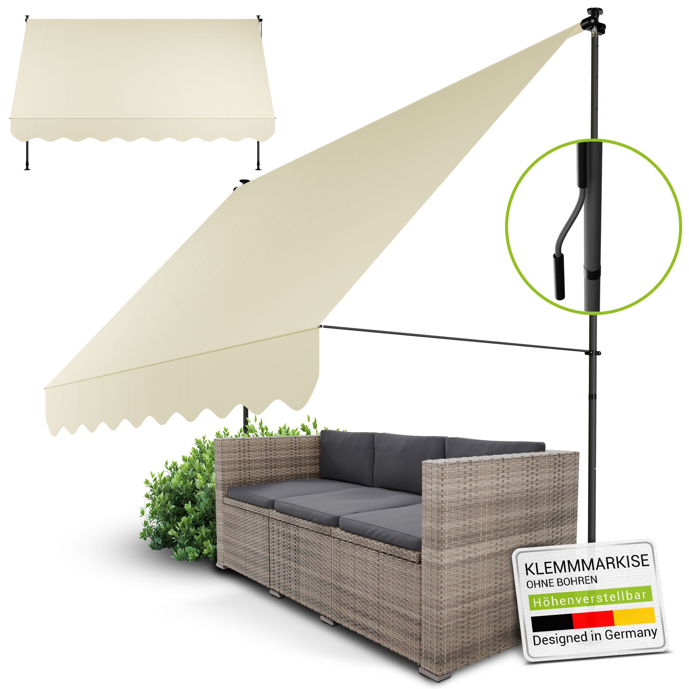 Flexibel, einfach und stilvoll - die perfekte Klemmmarkise für Mietwohnung und eine einfache Installation ohne Bohren, Schrauben und handwerkliches Know-How.