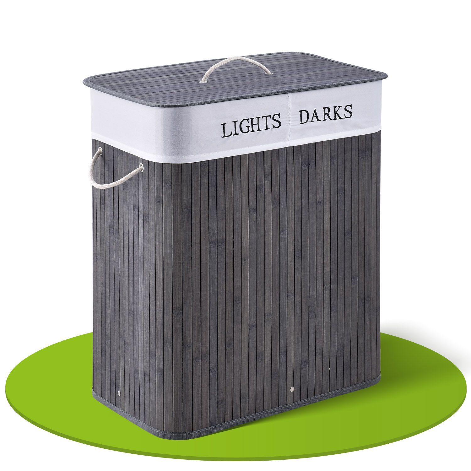 Im Bambus Curly Wäschekorb mit Deckel (100 l, grau) bewahren Sie Wäsche ordentlich, diskret und geruchsdicht auf. Mit einer Размер von 52 × 32 cm bietet der Korb ausreichend Stauraum – perfekt für die Familie. In zwei Fächern trennen Sie Ihre Kleidung in bunt und weiß, was später viel Zeit spart! Platzieren lässt sich der stabile Sortierer im Schlafzimmer oder Kinderzimmer, z. B. neben Schrank, Badewanne oder in eine Ecke im Badezimmer. Für eine hygienische Aufbewahrung Ihrer Socken oder Unterwäsche sorgt ein herausnehmbarer Wäschesack. Der Wäschesortierer ist verschließbar und lässt sich mit einem Griff flexibel zur Waschmaschine bringen.