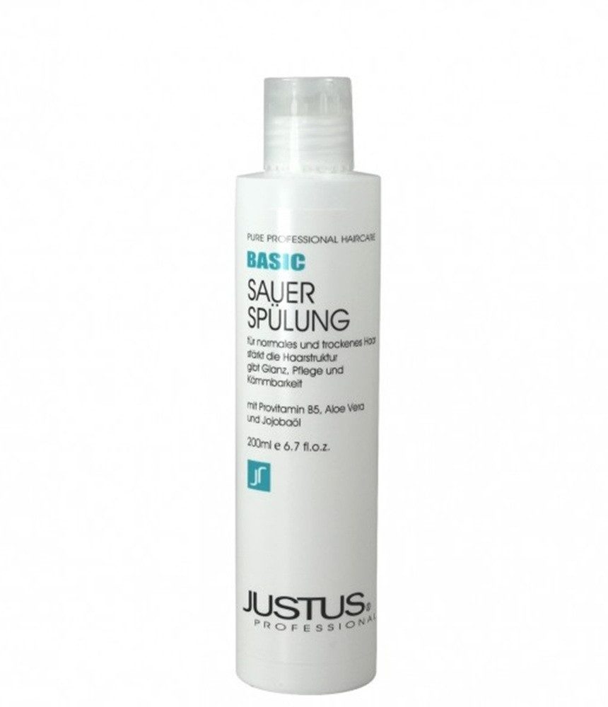 Die Justus System Sauerspülung wurde speziell entwickelt, um die Haarstruktur nach chemischen Behandlungen zu stabilisieren und die Schuppenschicht zu schließen. Die milde, pH-ausgleichende Formel sorgt für eine bessere Kämmbarkeit, verleiht dem Haar einen seidigen Glanz und schützt vor äußeren Einflüssen.