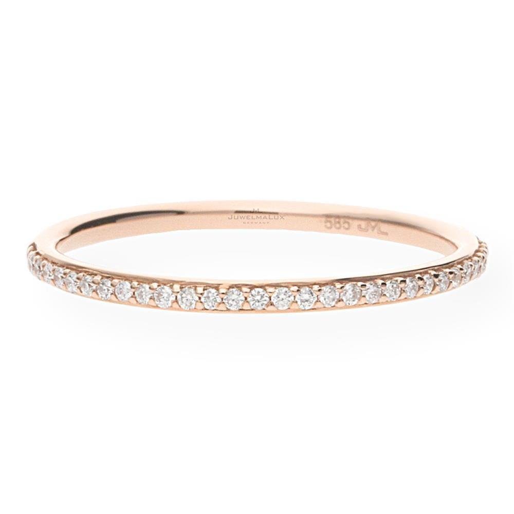 Der elegante JuwelmaLux Ring aus 585/000 Rotgold ist zur Hälfte mit funkelnden Brillanten besetzt. Er eignet sich auch ideal als Verlobungsring.