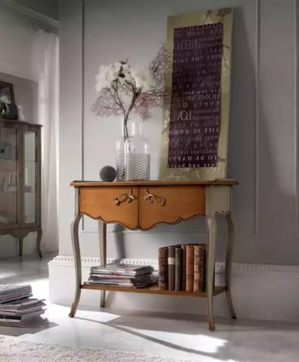 Entdecken Sie den luxuriösen Schminktisch aus Holz im klassischen italienischen Design – ein zeitloses Meisterwerk, das Eleganz und Funktionalität vereint. Mit seinen großzügigen Maßen von 90 x 38 x 80 cm fügt sich dieser Konsolentisch mühelos in jedes Wohnambiente ein. Das edle Art Deco-Design strahlt Stil und Raffinesse aus, während die hochwertige Holzverarbeitung für Langlebigkeit und Stabilität sorgt. Die zwei praktischen Schubladen bieten ausreichend Stauraum für Ihre Beauty-Produkte und Accessoires und behalten gleichzeitig die Ordnung in Ihrem Wohnbereich. Mit einem Einlegeboden ermöglicht dieser Tisch eine flexible Nutzung – sei es im Schlafzimmer, Wohnzimmer oder Eingangsbereich. Hergestellt in Europa, steht dieser Schminktisch nicht nur für hervorragende Qualität, sondern auch für höchste handwerkliche Tradition. Die braune Farbgebung und die rechteckige Form unterstreichen die elegante Ästhetik. Der Schminktisch ist die ideale Wahl für moderne und stilbewusste Erwachsene sowie Jugendliche, die Wert auf ein ansprechendes Wohnumfeld legen. Bringen Sie mit diesem Möbelstück einen Hauch von Luxus in Ihr Zuhause und genießen Sie jeden Tag das Gefühl von Genuss und Stil.