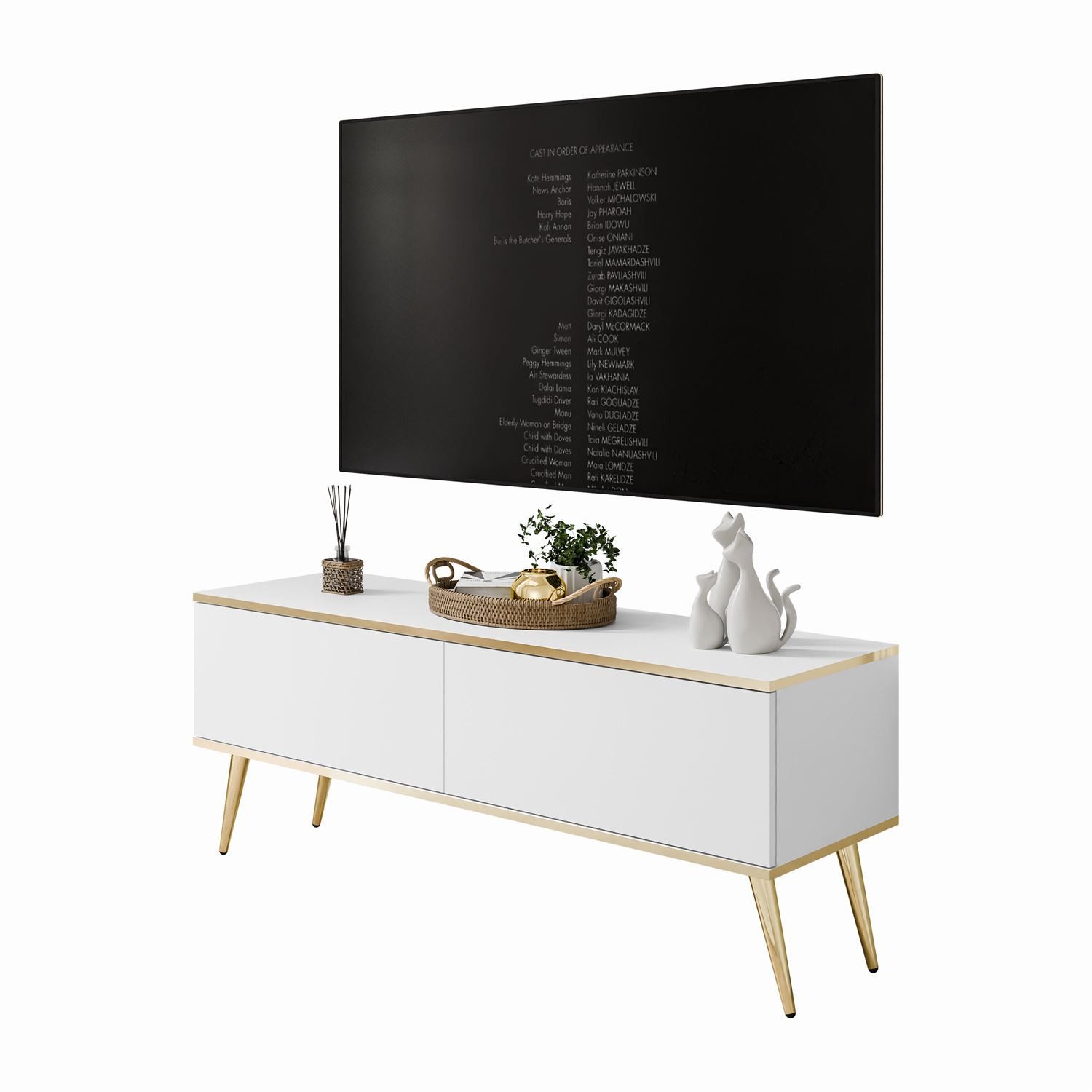 Lowboard TV Lowboard Schrank Garnitur Holz Regal Wohnzimmer Gold