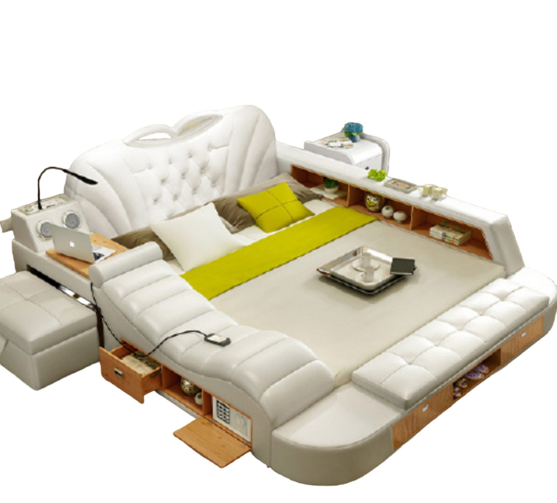 Ausstattung | Schubladenfächer Hocker zum einschieben Relax Liege mit Massagefunktion ( mit Fernbedienung) Verstellbarer Tisch USB Anschluss Bluetooth für Kontakt mit Handy Soundboxen mit Bluetooth verbindbar Tresor mit Schlüssel und Pin Verfahren Nachtlampe |