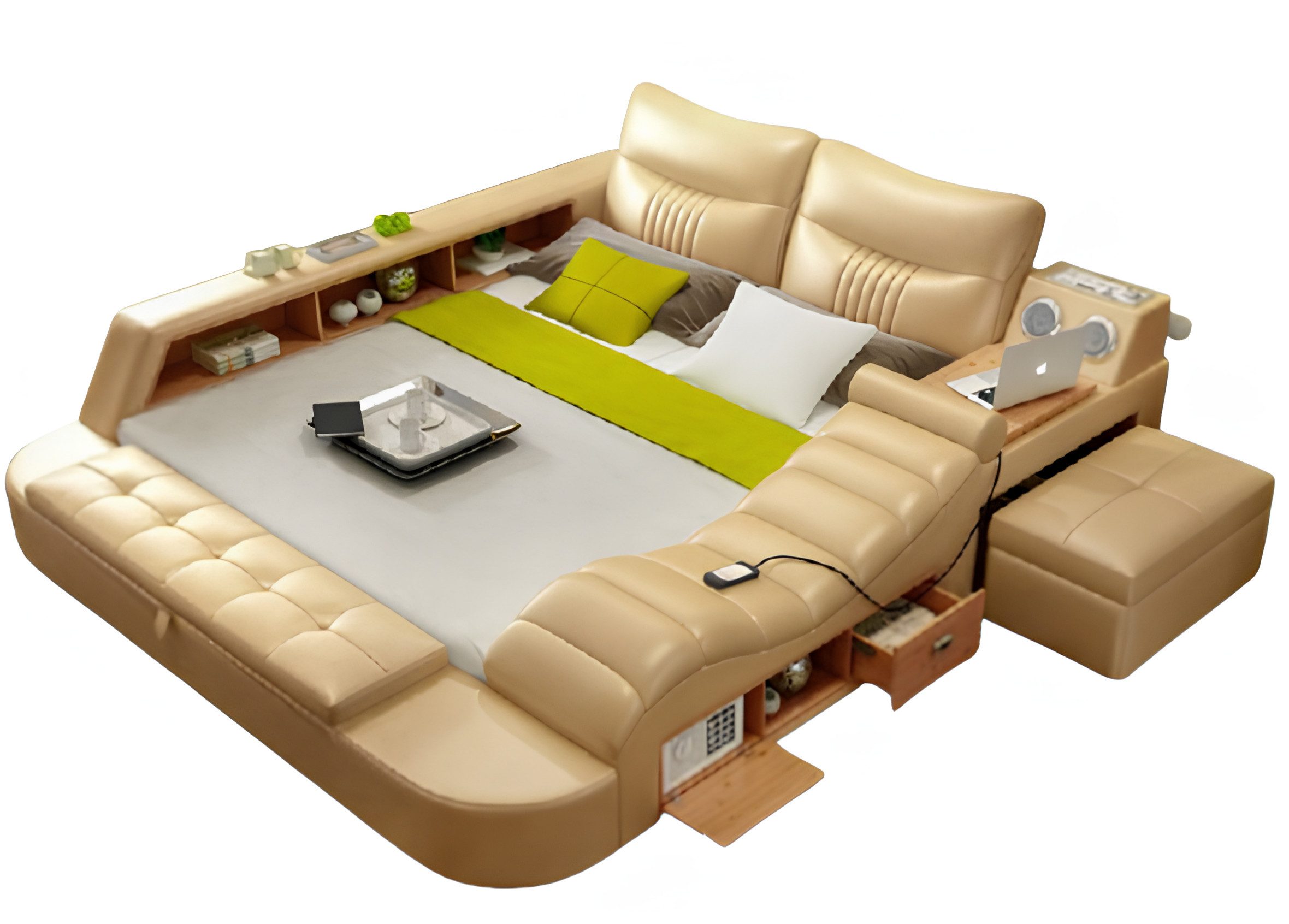 Ausstattung | Schubladenfächer Hocker zum einschieben Relax Liege mit Massagefunktion ( mit Fernbedienung) Verstellbarer Tisch USB Anschluss Bluetooth für Kontakt mit Handy Soundboxen mit Bluetooth verbindbar |