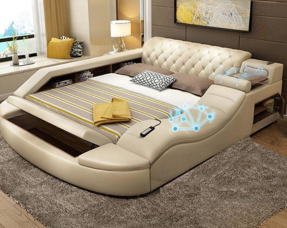 Ausstattung | Schubladenfächer Relax Liege mit Massagefunktion ( mit Fernbedienung) Verstellbarer Tisch USB Anschluss Bluetooth für Kontakt mit Handy Soundboxen mit Bluetooth verbindbar Tresor mit Schlüssel und Pin Verfahren |