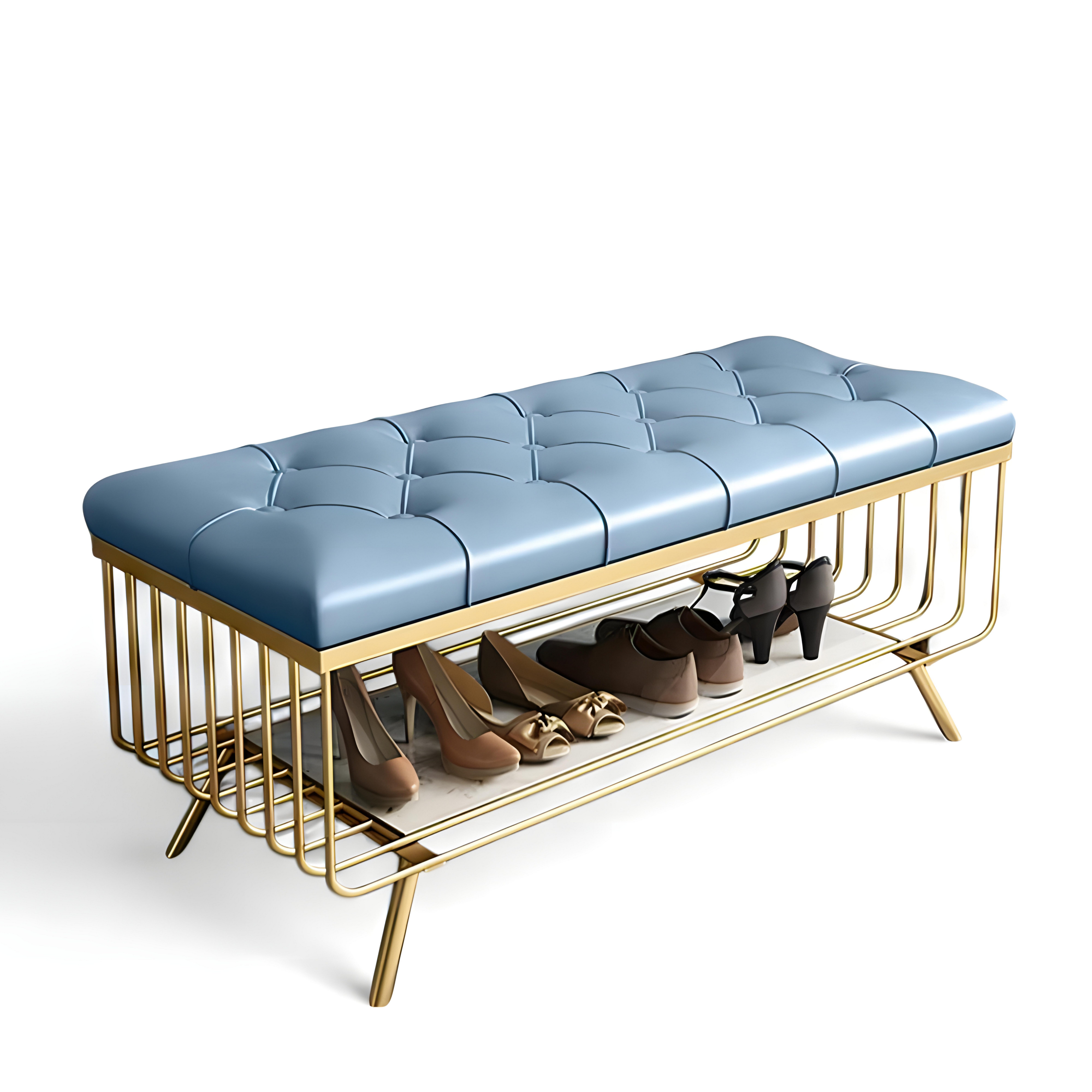 JVmoebel Schuhbank Praktische blaue Bank mit weicher Sitzfläche und Schuhablage, Made in Europe