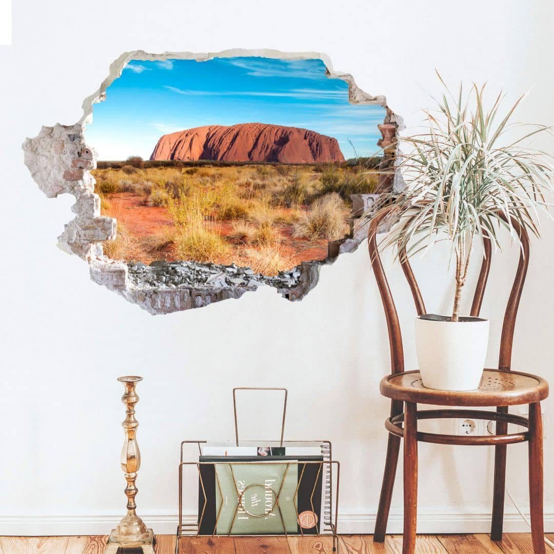 Schlüpfen Sie durch die Mauer! Mit dem selbstklebenden Sticker in dezenter 3D Optik haben Sie einen beeindruckenden Ausblick. Der realistische Fotodruck bei traumhaftem Wetter verspricht jeden Tag gute Laune und die besten Aussichten. Ob Wohnzimmer, Büro, Vintage oder Modern, die Wand Dekoration schenkt dem Wohnraum ein harmonisches Ambiente. Selbst in kleinen, oder verwinkelten Räumen erzielt der Steinmauer-Durchbruch eine tiefe Wirkung.