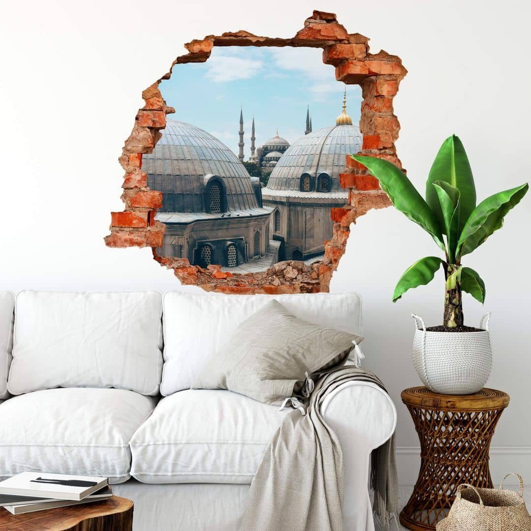 Schlüpfen Sie durch die Mauer! Mit dem selbstklebenden Sticker haben Sie einen beeindruckenden Ausblick. Der realistische Fotodruck bei traumhaftem Wetter verspricht jeden Tag gute Laune und die besten Aussichten. Ob Wohnzimmer, Büro, Vintage oder Modern, die Wand Dekoration schenkt dem Wohnraum ein aufregendes Ambiente. Selbst in kleinen, oder verwinkelten Räumen erzielt der Steinmauer-Durchbruch eine tiefe Wirkung.